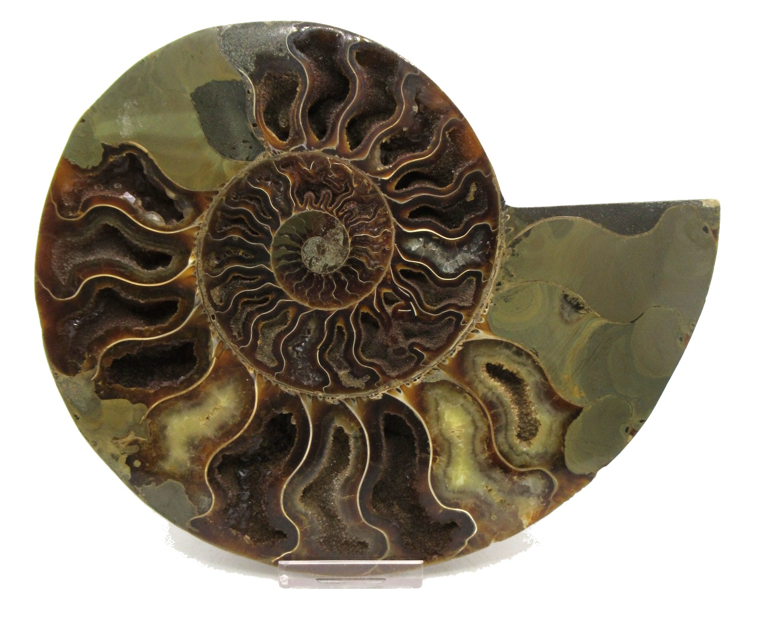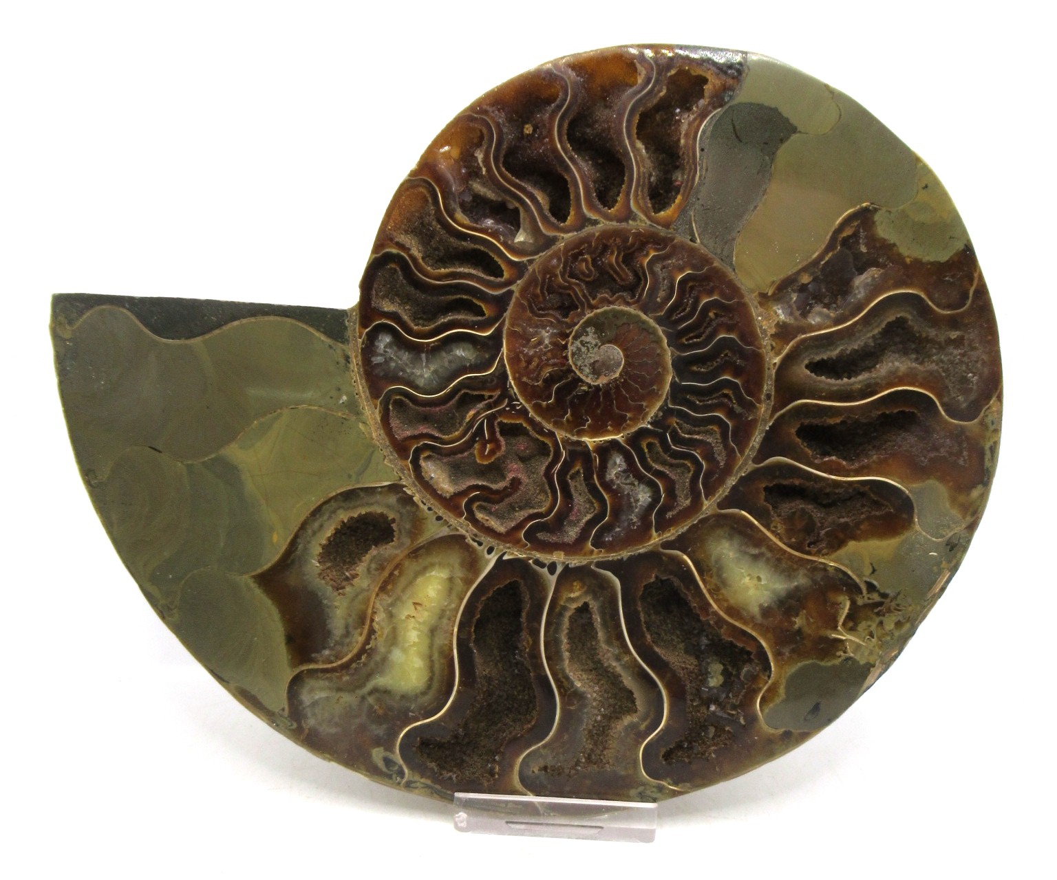 - This beautiful cut & polished specimen shows off the internal chambers as well as the outer shell!
