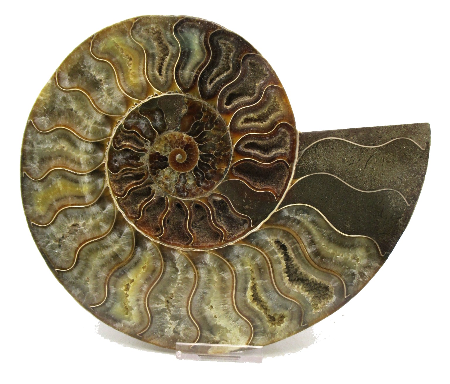 - This beautiful cut & polished specimen shows off the internal chambers as well as the outer shell!