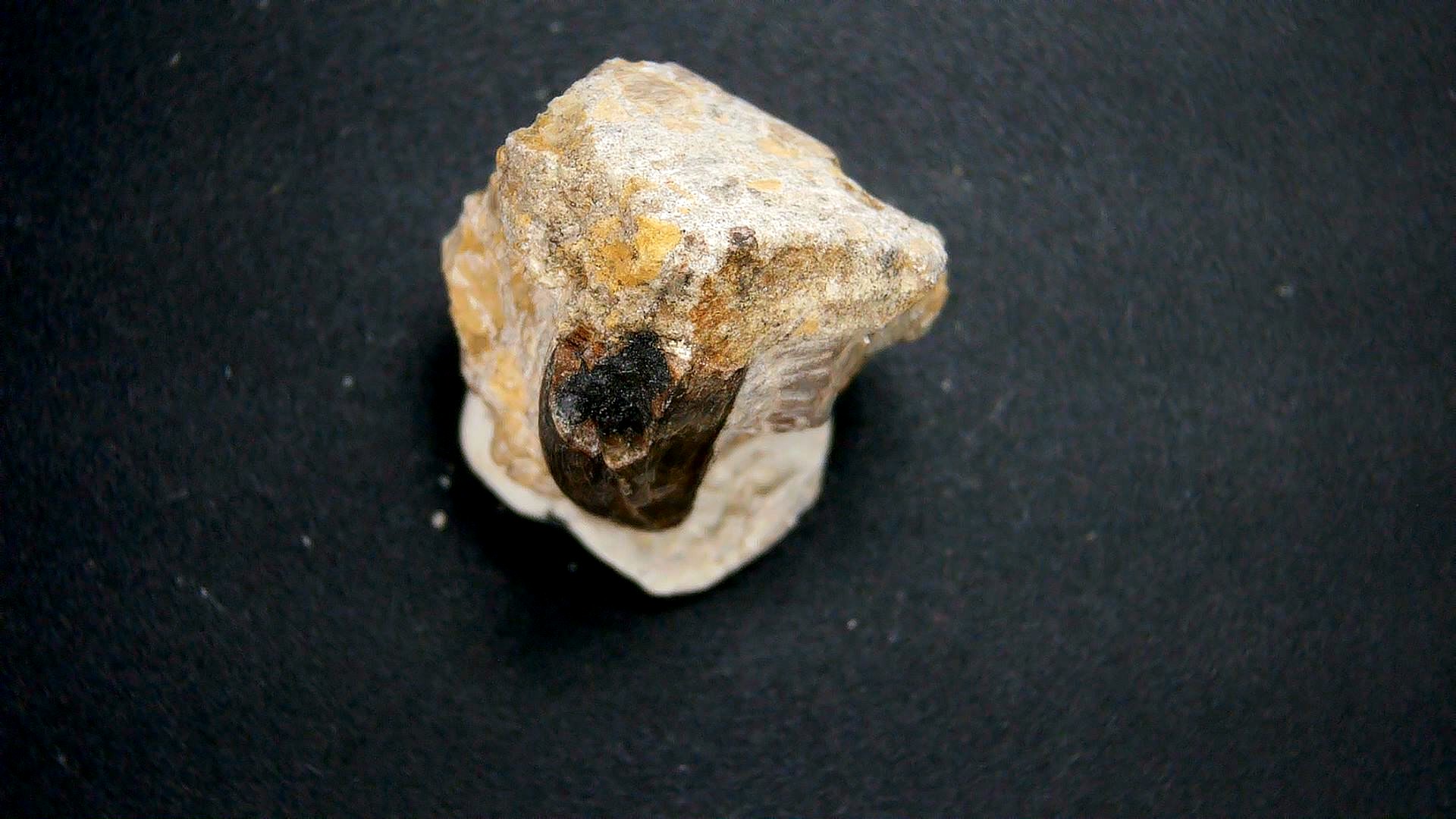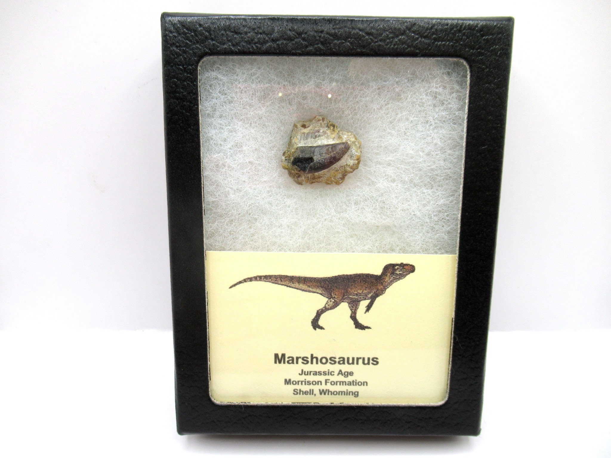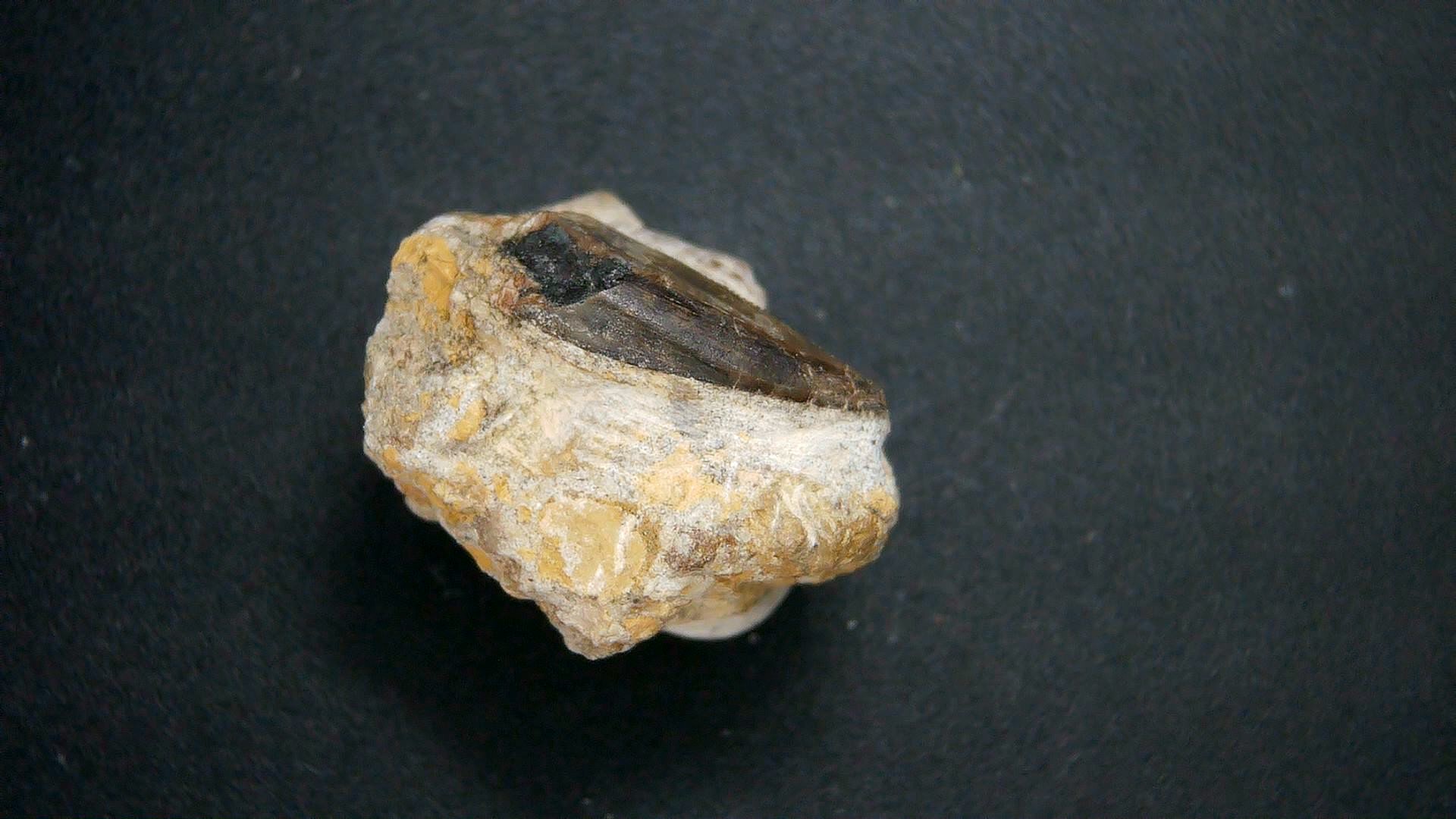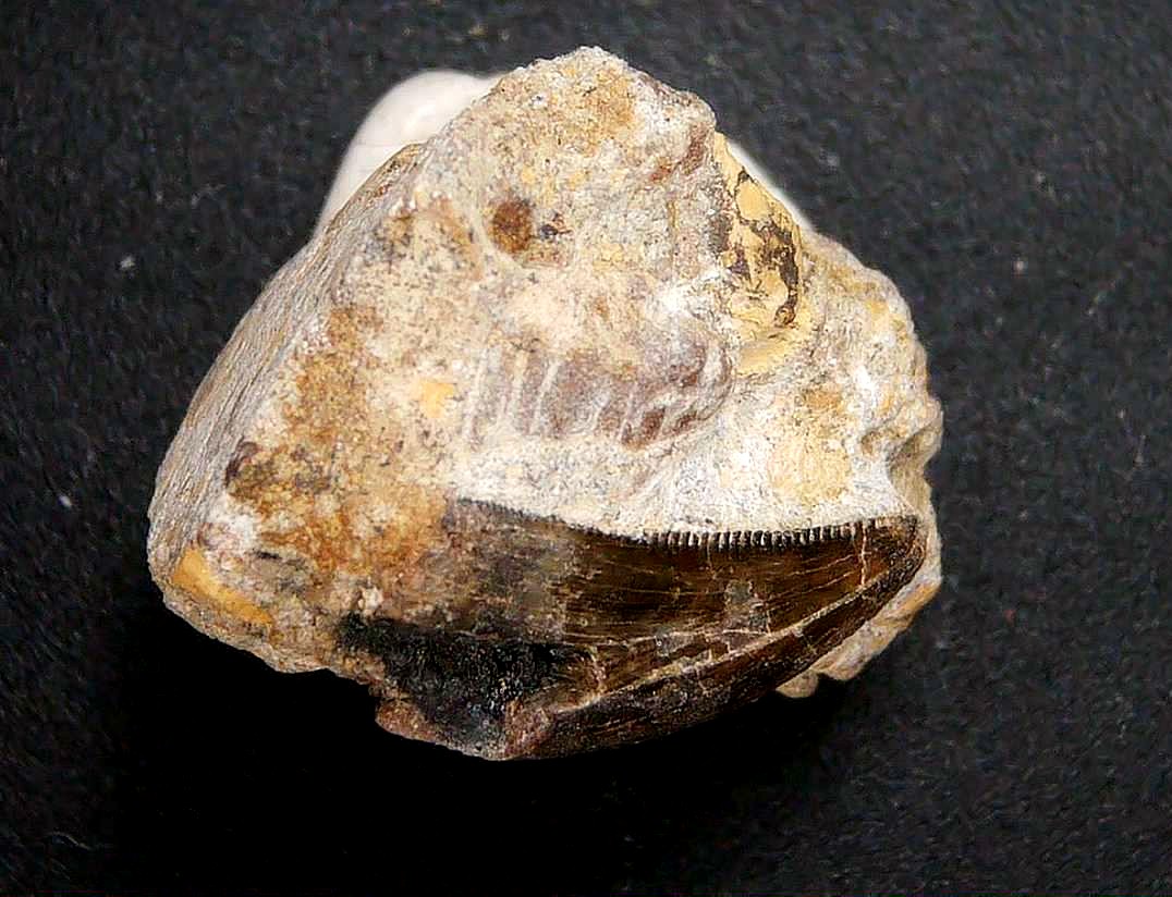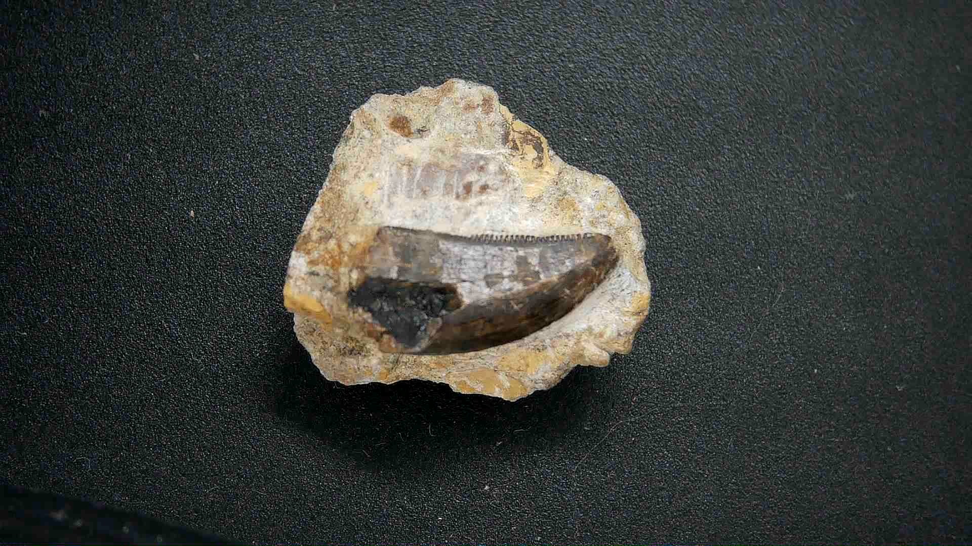 - Specimen measures .65″ long and is in the matrix as found. Nice BIG serrations!!
