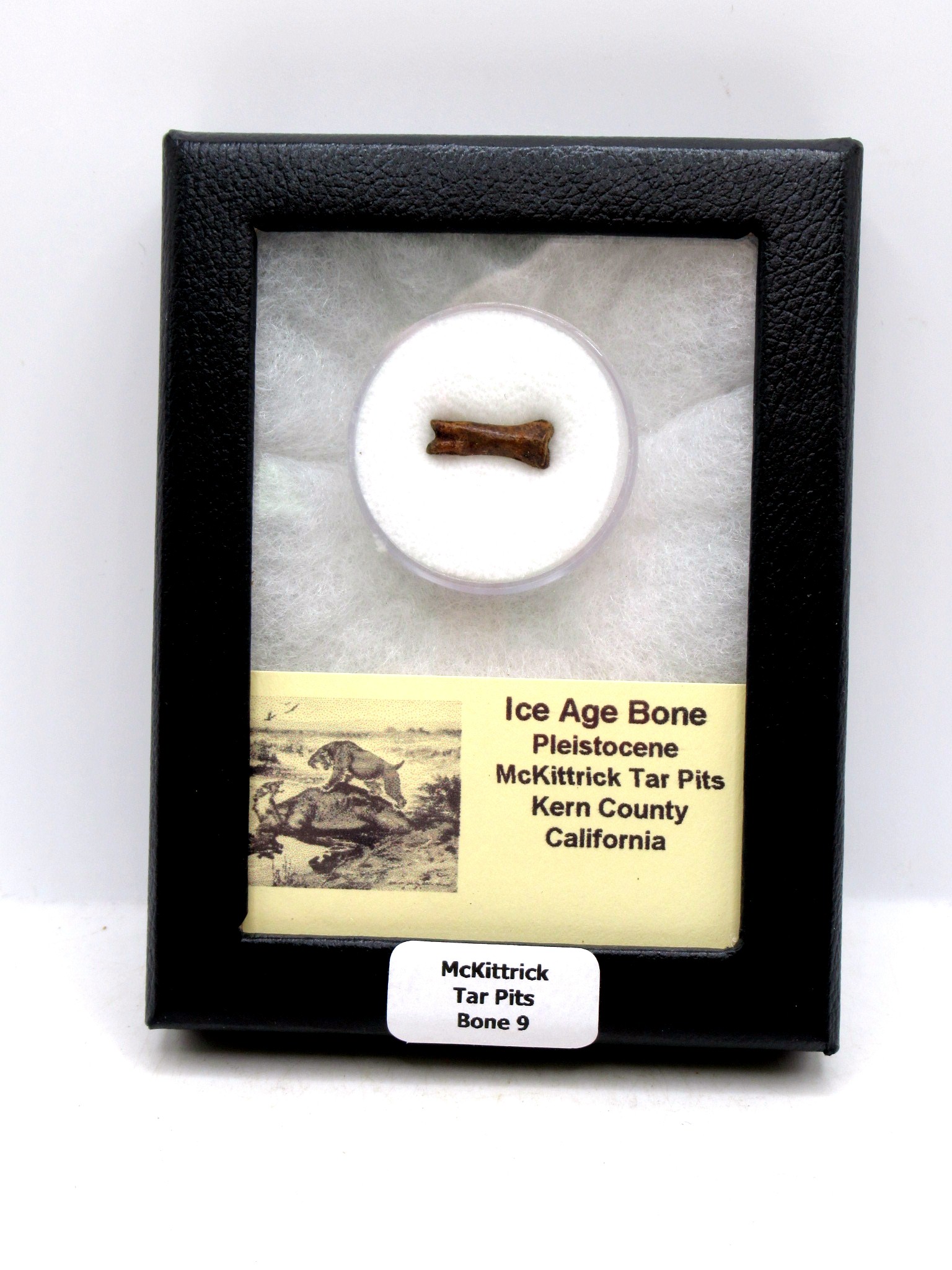 - In this case, the bone comes from an unidentified bird or mammal that measures .61″ long. In addition, it will come in a 1.5″ gem jar and 3.25″ x 4.25″ Riker Mount with Label as shown