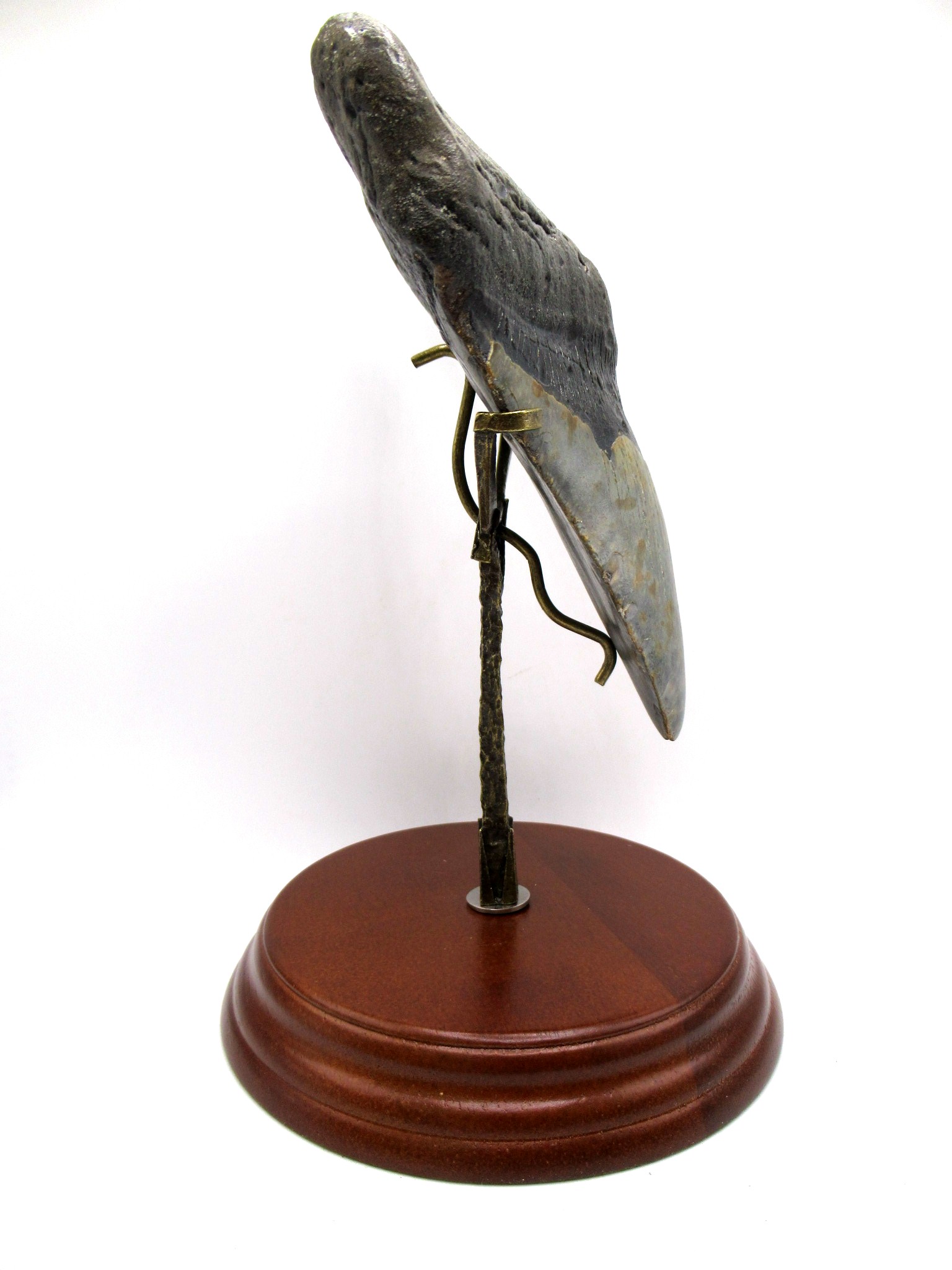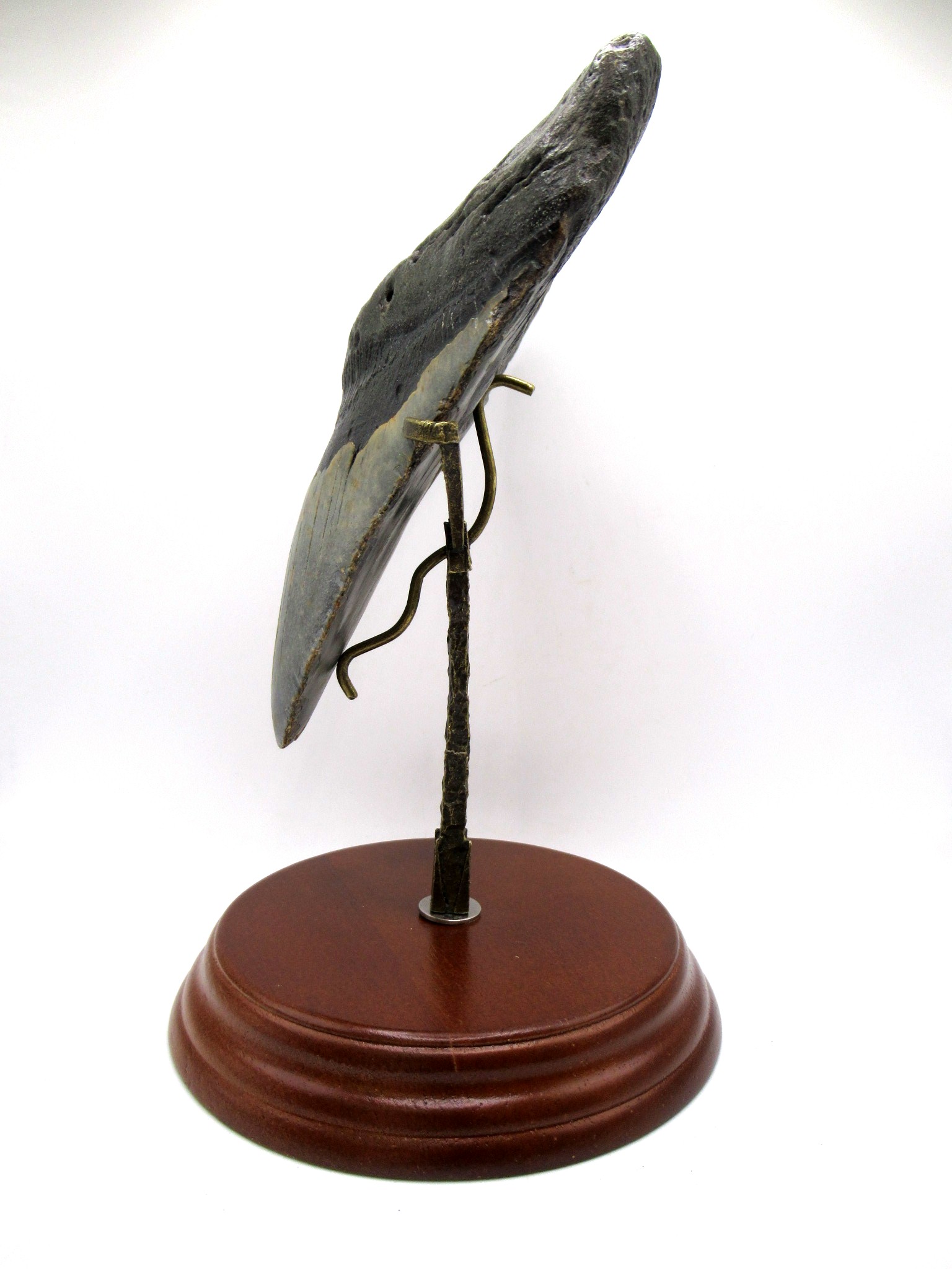 - Specimen measures 5.85″ long along the longest side of the tooth. It will come with the metal and wooden stand as shown.