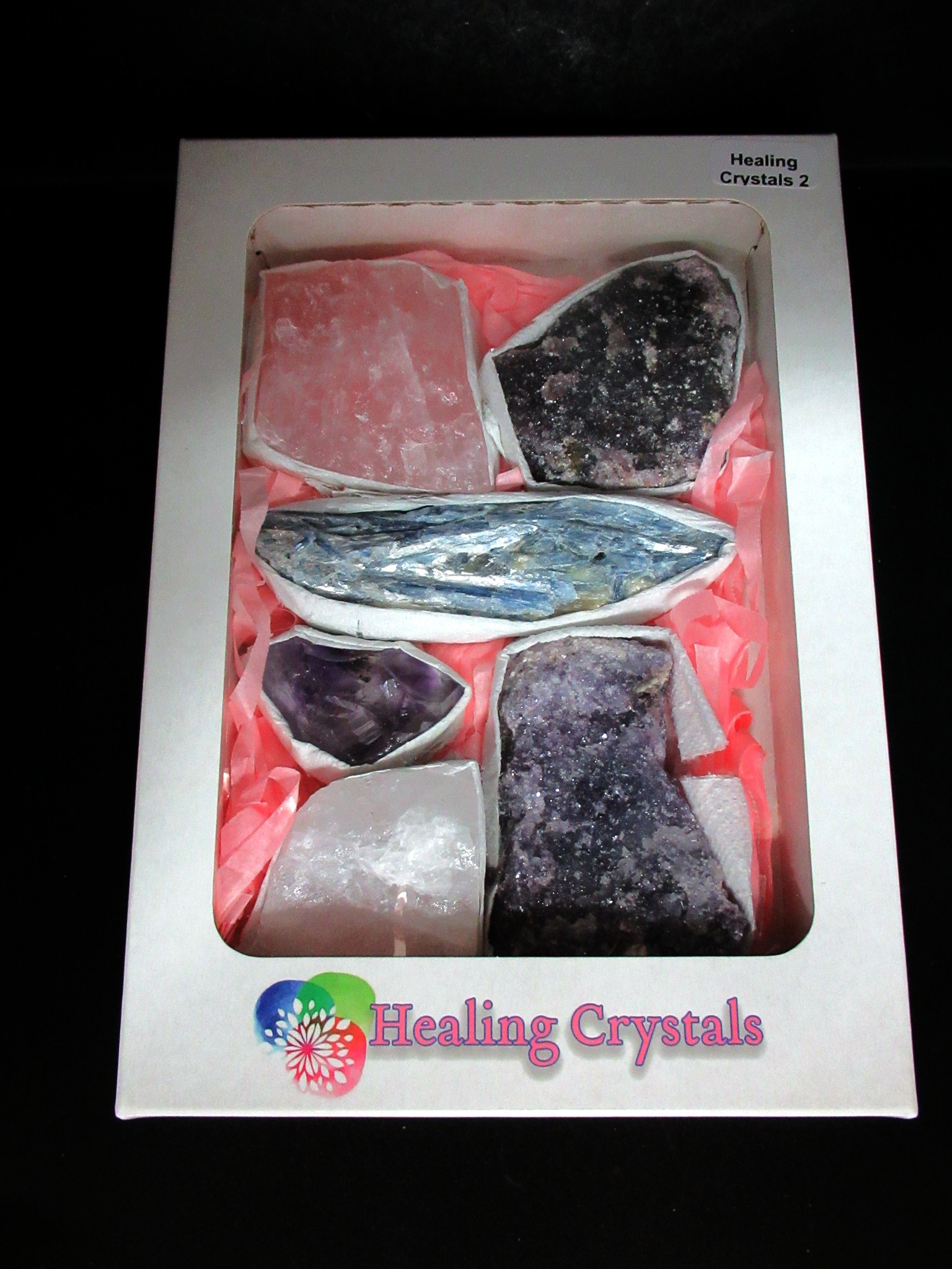 - Contains: Amethyst, Lepidolite, as well as Rose Quartz and Pink Tourmaline, Quartz, and finally Kyanite