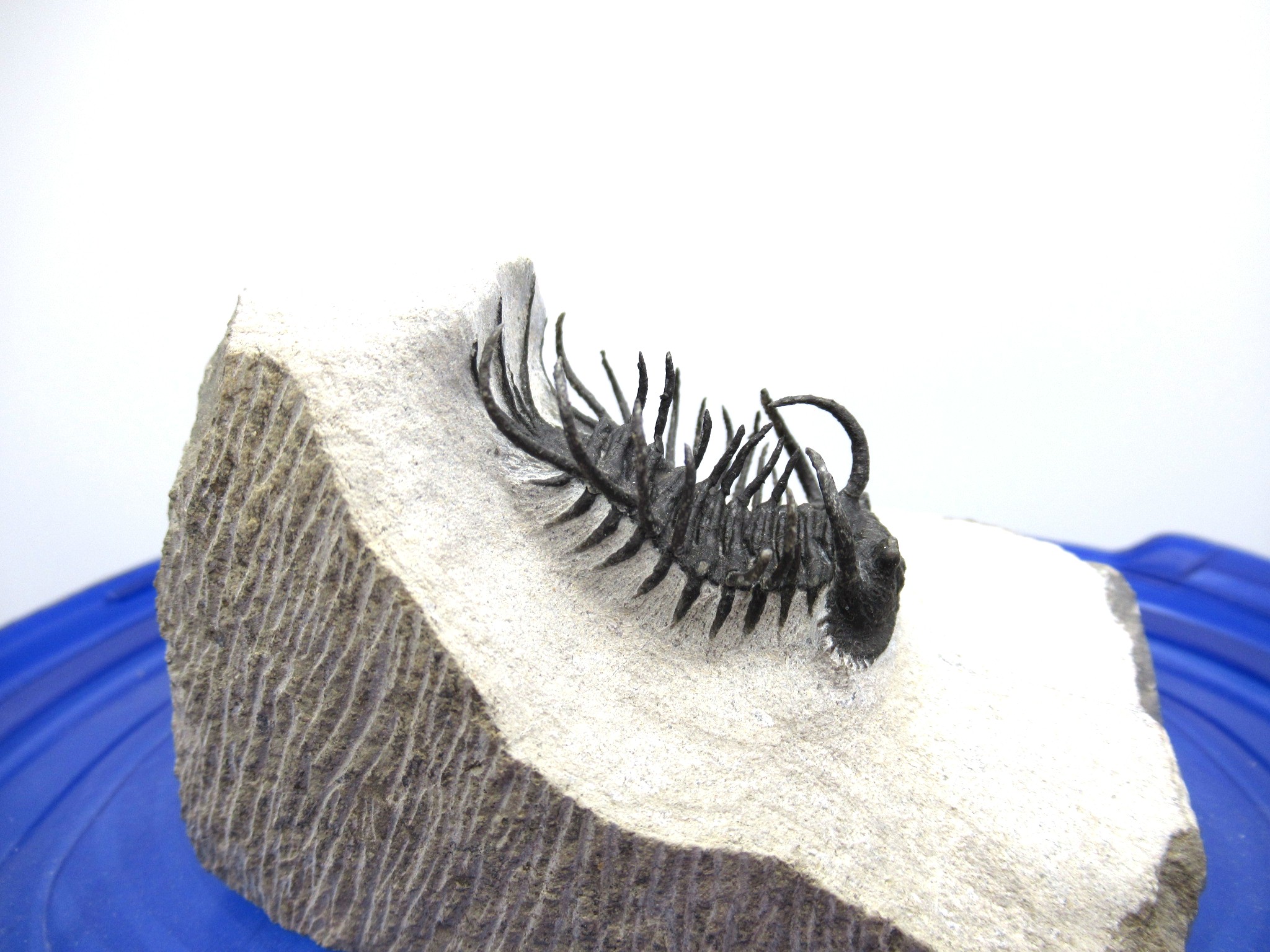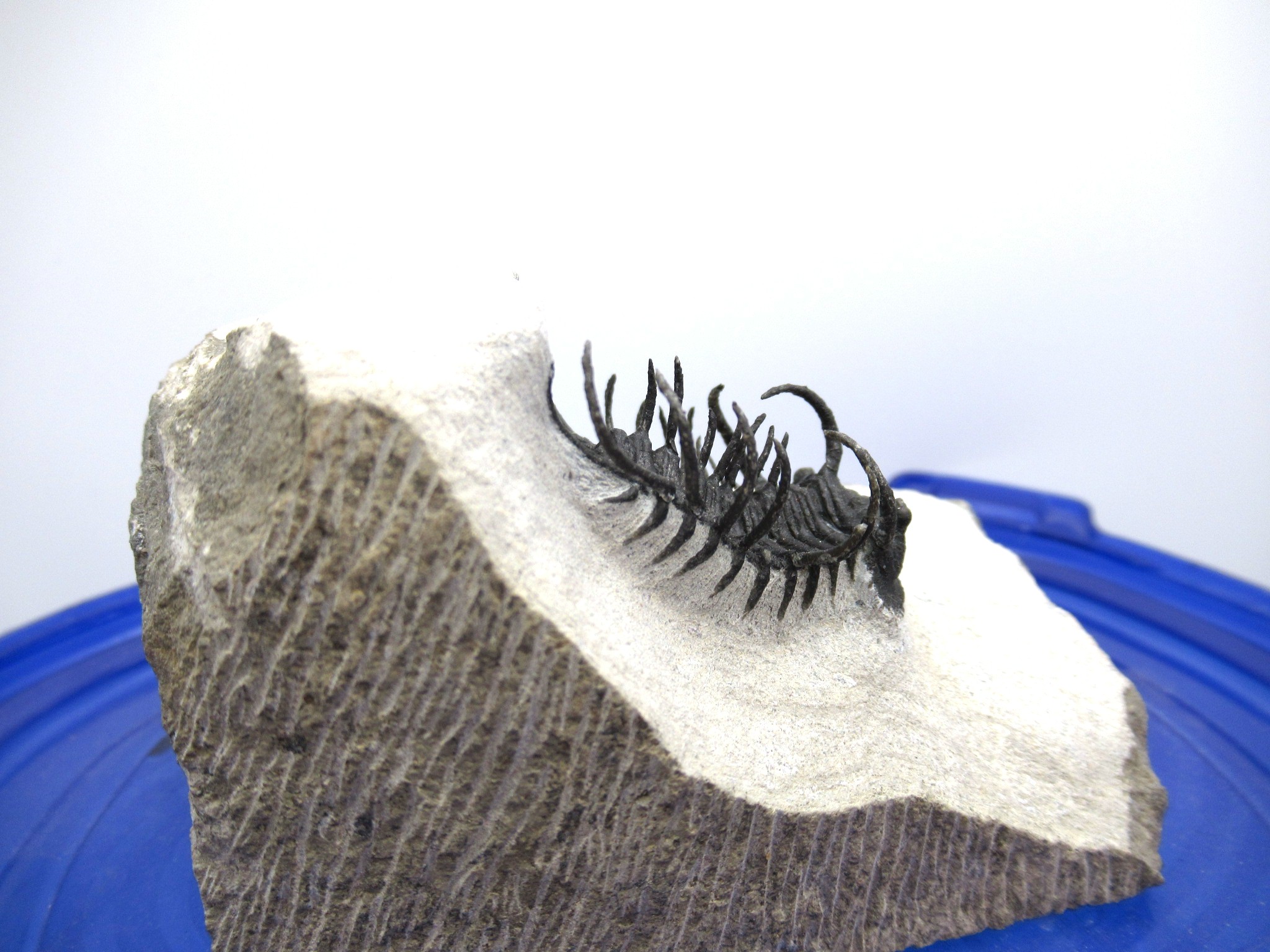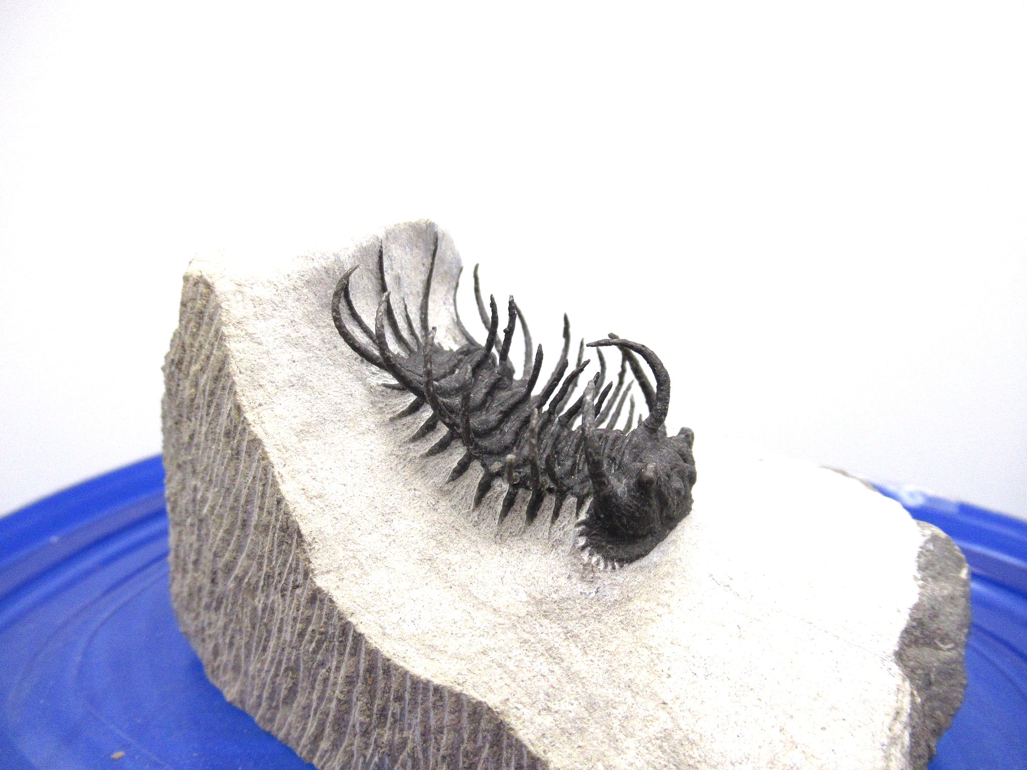 All of the trilobites we offer have been 100% LAB PREPPED USING STATE OF THE ART EQUIPMENT.  Bear in mind that trilobites that have spines and stalks on them have most likely had some of them reattached during the preparation process. It is virtually impossible to prep them out completely without damaging them.  Reattachment is NOT the same as reconstruction or fabrication!! Repairs & restoration are minimal on these incredible specimens…