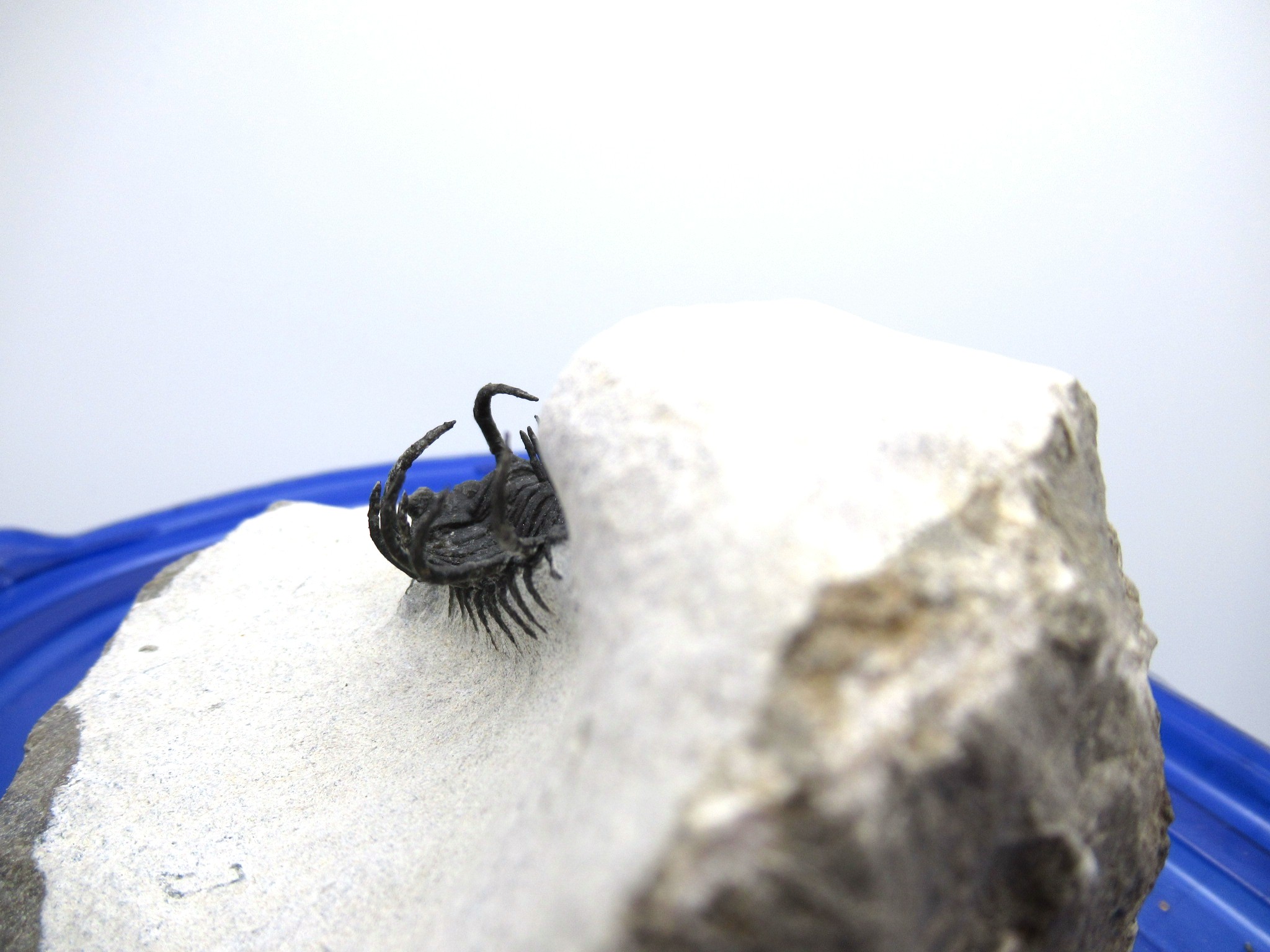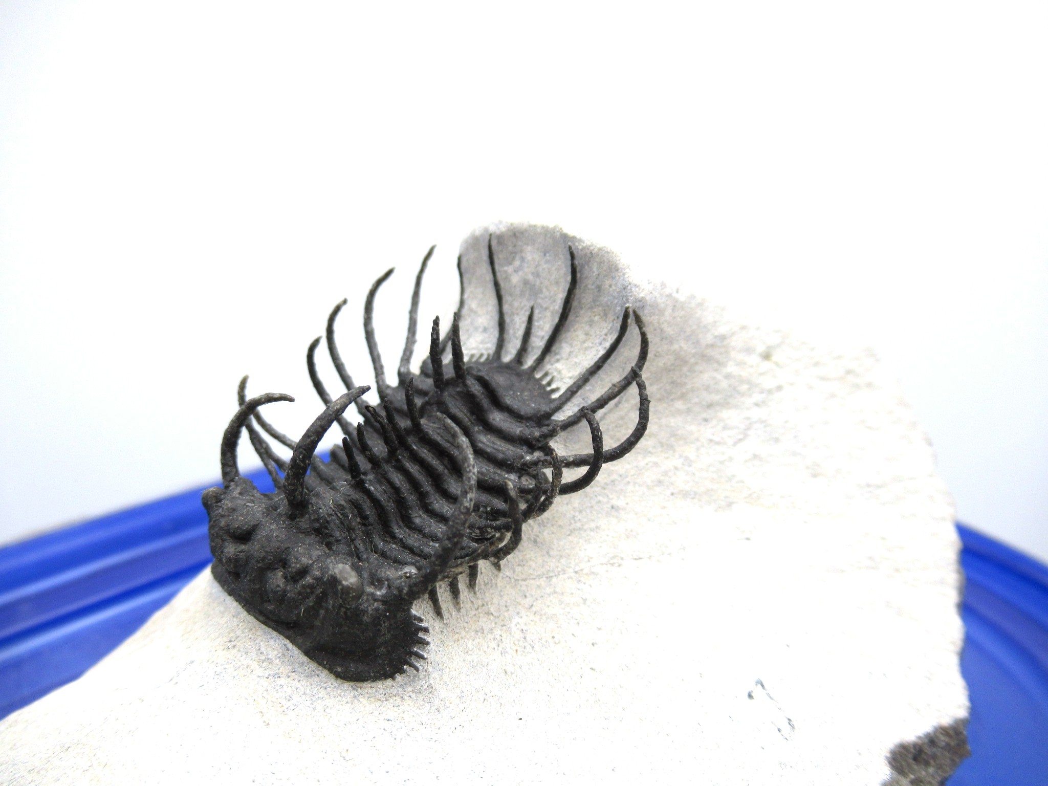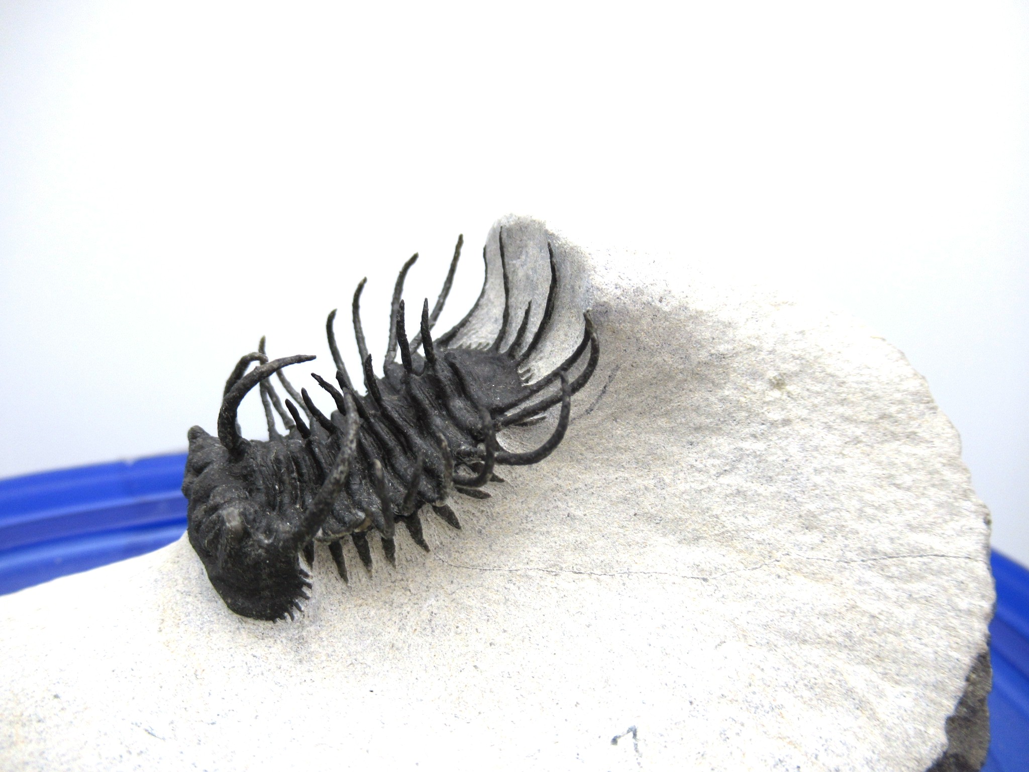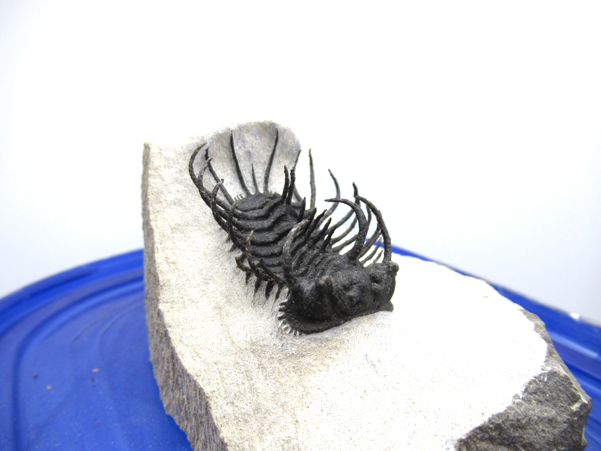 All of the trilobites we offer have been 100% LAB PREPPED USING STATE OF THE ART EQUIPMENT.  Bear in mind that trilobites that have spines and stalks on them have most likely had some of them reattached during the preparation process. It is virtually impossible to prep them out completely without damaging them.  Reattachment is NOT the same as reconstruction or fabrication!! Repairs & restoration are minimal on these incredible specimens…