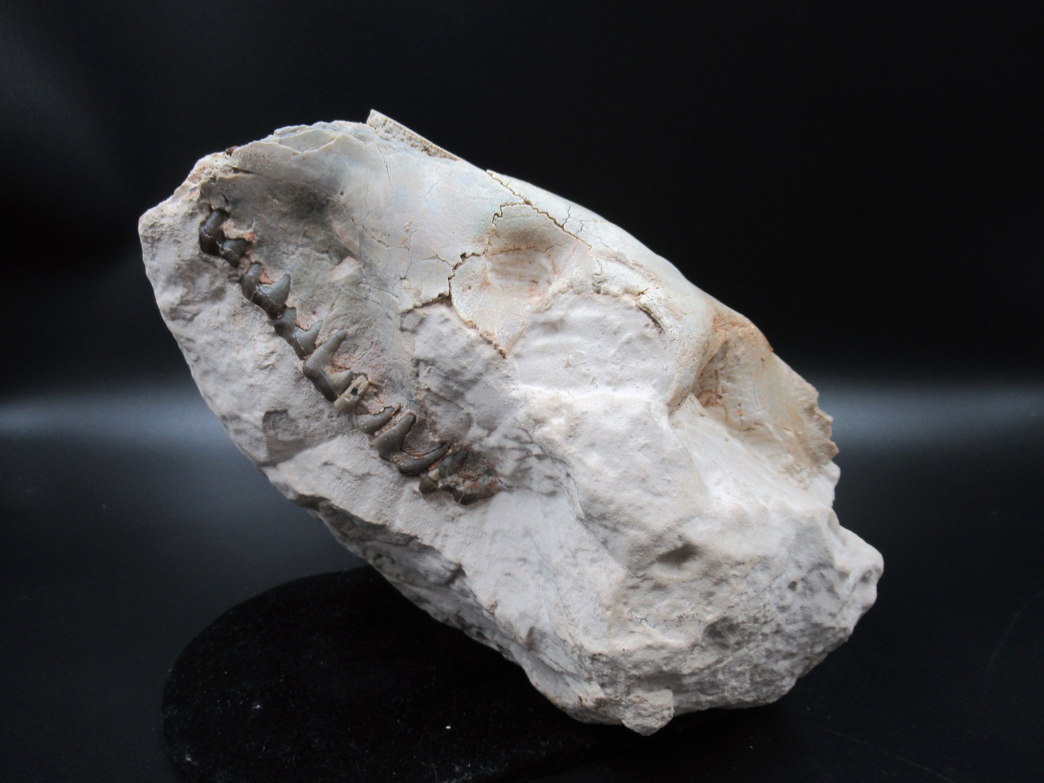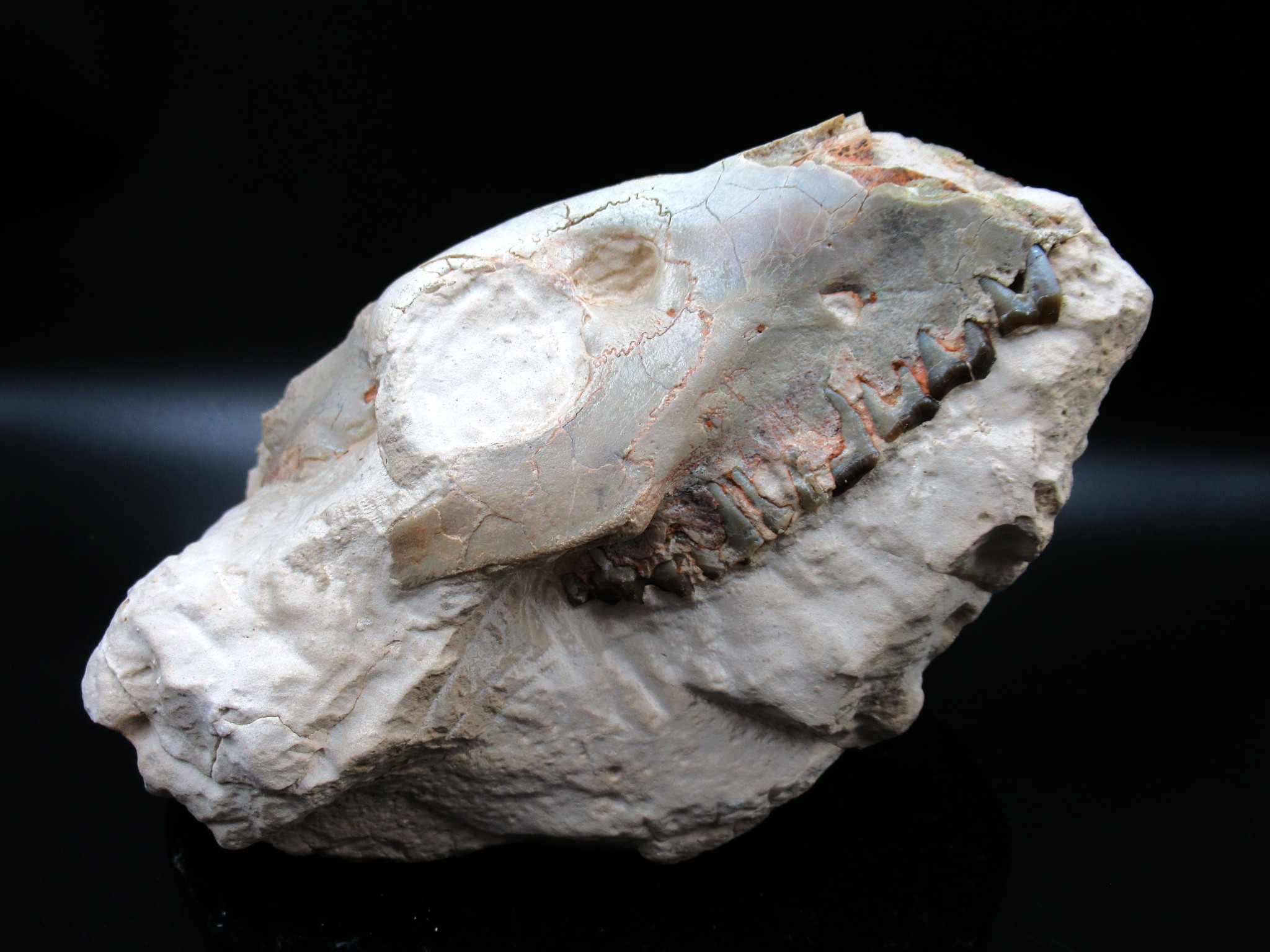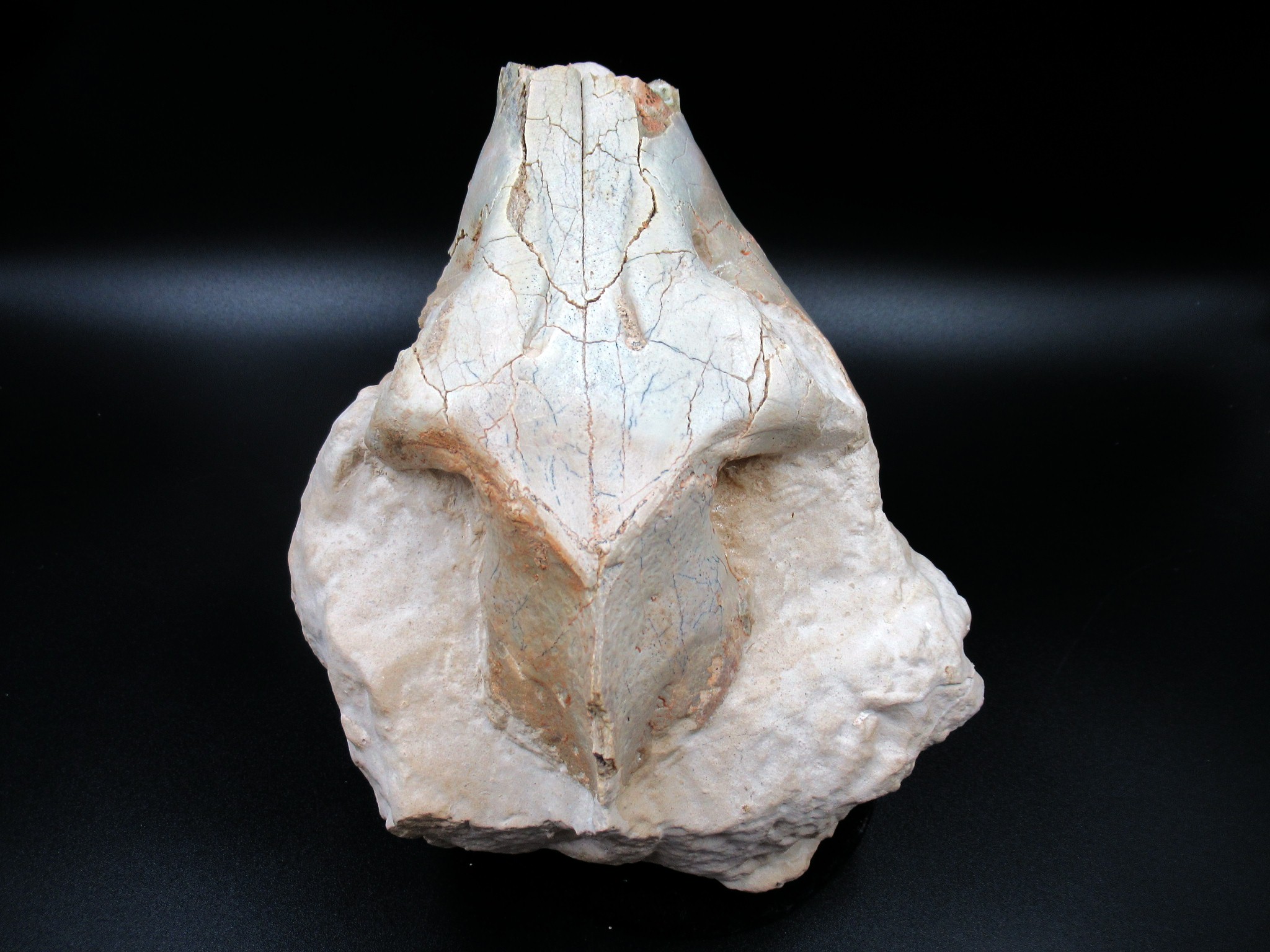 - Coming from an old collection, this skull exhibits good old fashioned prep work. in this case is limited to repairs. Also there is very little restoration that is pretty much limited to matrix fill.