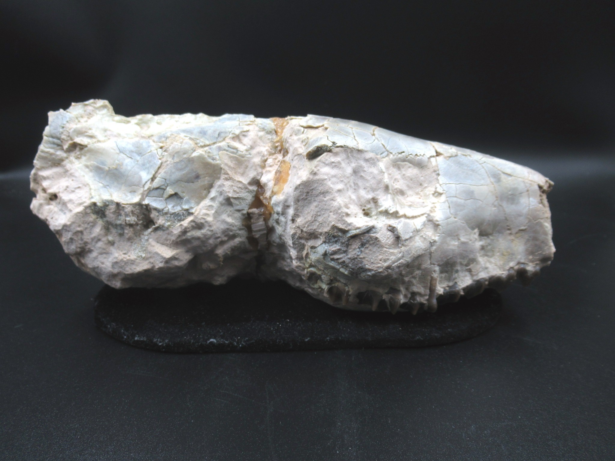 - Coming from an old collection, this skull exhibits good old fashioned prep work.  in this case is limited to repairs.  Also there is very little restoration that is pretty much limited to matrix fill.