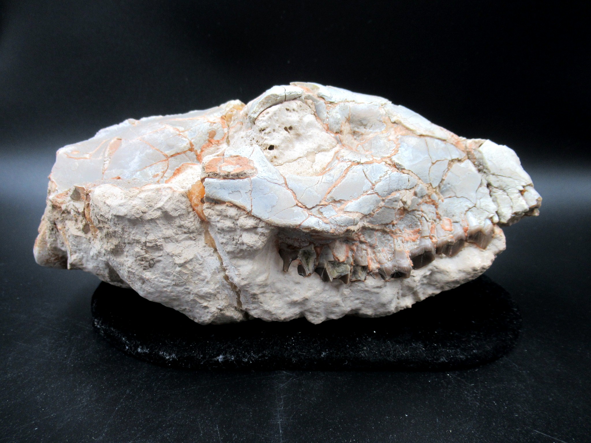 - Coming from an old collection, this skull exhibits good old fashioned prep work. in this case is limited to repairs. Also there is very little restoration that is pretty much limited to matrix fill.