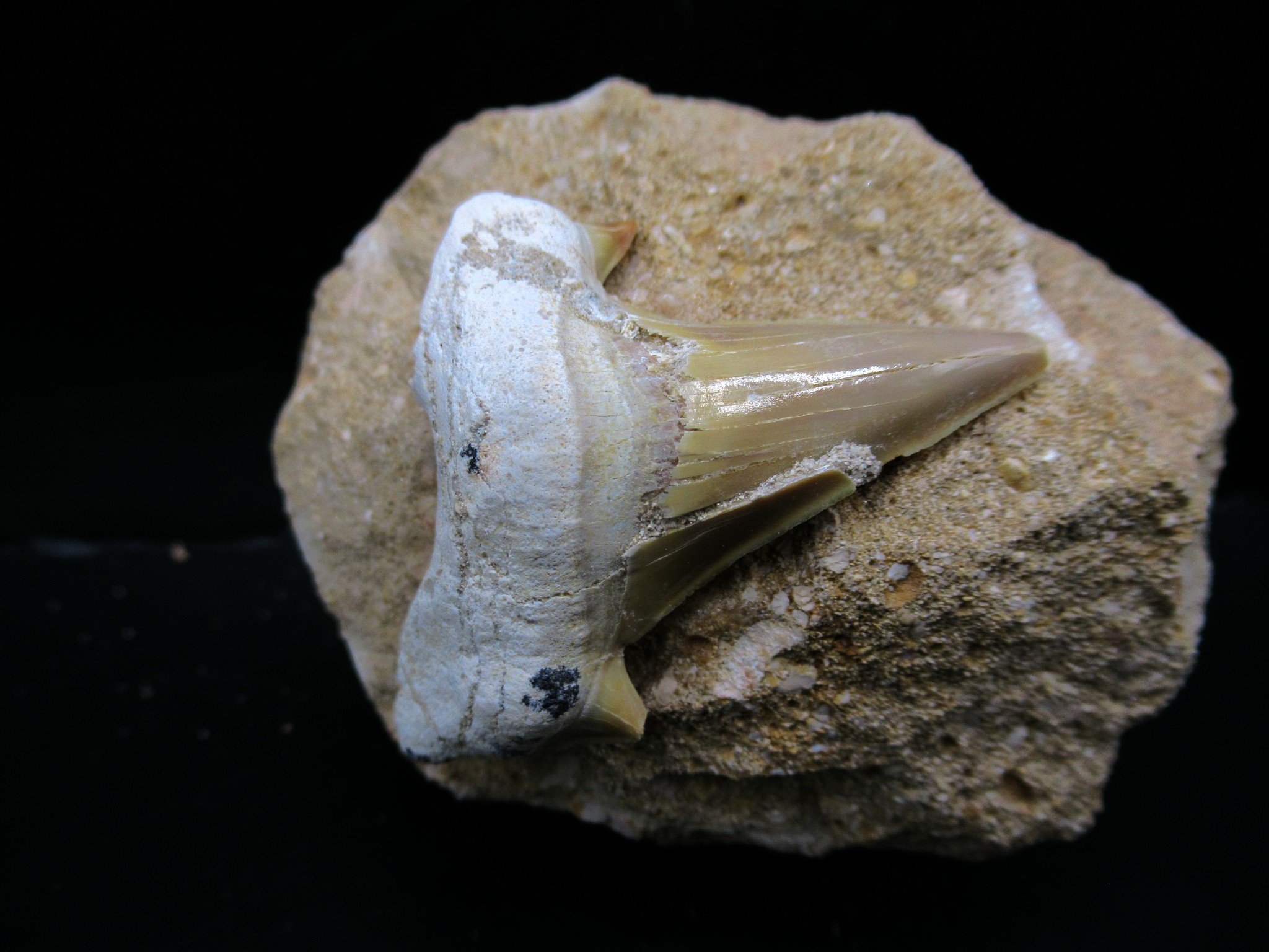 Otodus is an extinct genus of mackerel shark which lived from the Paleocene to the Pliocene epoch. The name Otodus comes from Ancient Greek meaning “ear” and “tooth” – thus, “ear-shaped tooth”. In this case the teeth of this shark are large. They also have a triangular crown, smooth cutting edges, and visible cusps on the roots. Some Otodus teeth also show signs of evolving serrations. Scientists suggest that this shark at least reached 30 ft in total length with a maximum length of 40 ft                        Â