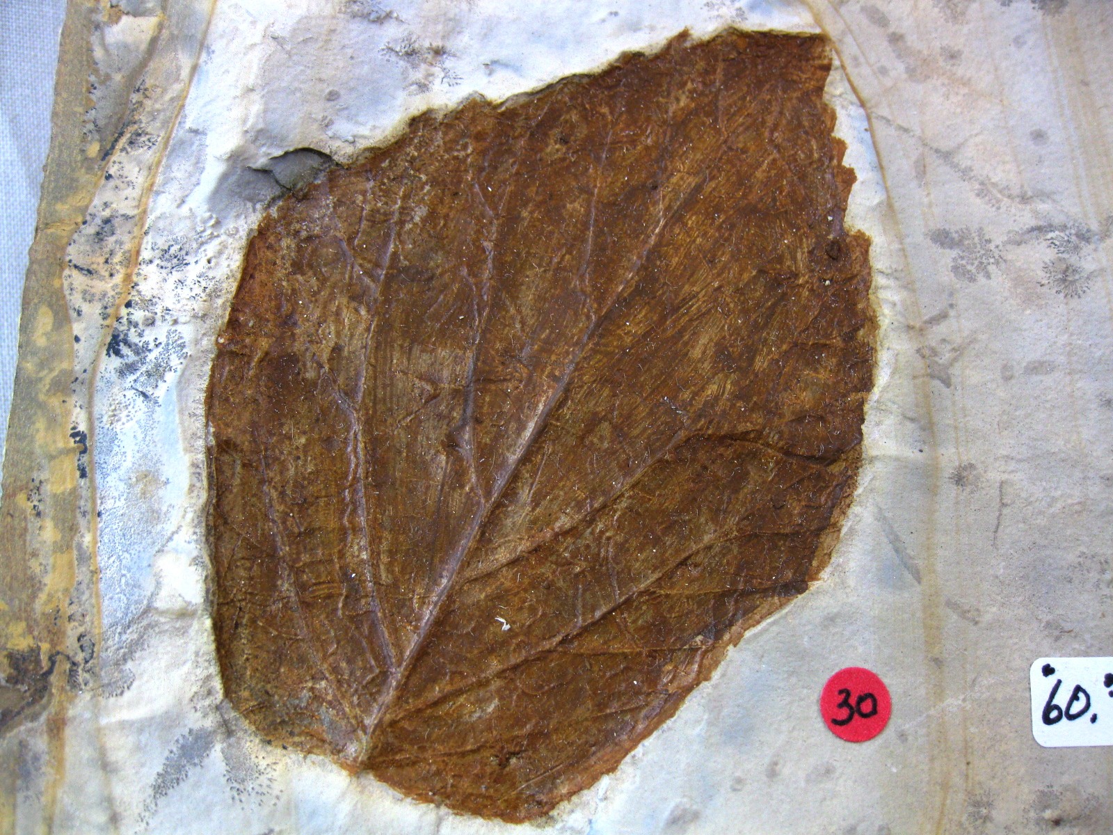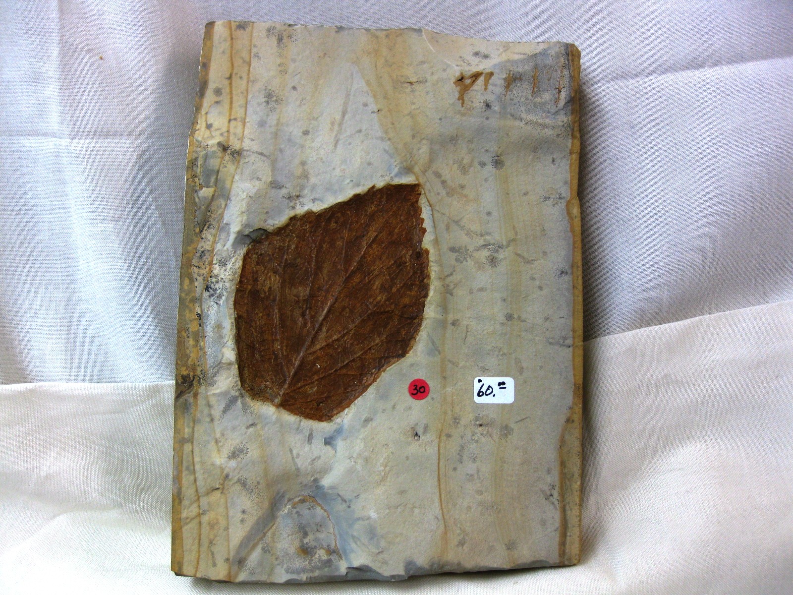 - The overall size of matrix measures approx. 4 3/4″ x 6 3/4″. The NATURAL COLOR of the leaf contrasts nicely with the color of the matrix. The leaf has had a very light coat of Vinac applied to protect the surface of the leaf.