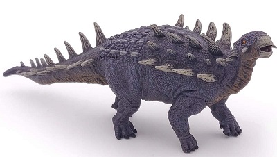 The Polacanthus, whose name means “many spines” was a quadruped of the family of “nodosaurids” living on Earth 132 to 122 million years ago. He was 13 to 16 feet long and his body was covered with two rows of thorns on his back, and many triangular plates at the tail, giving him real armor against the most ferocious predators!