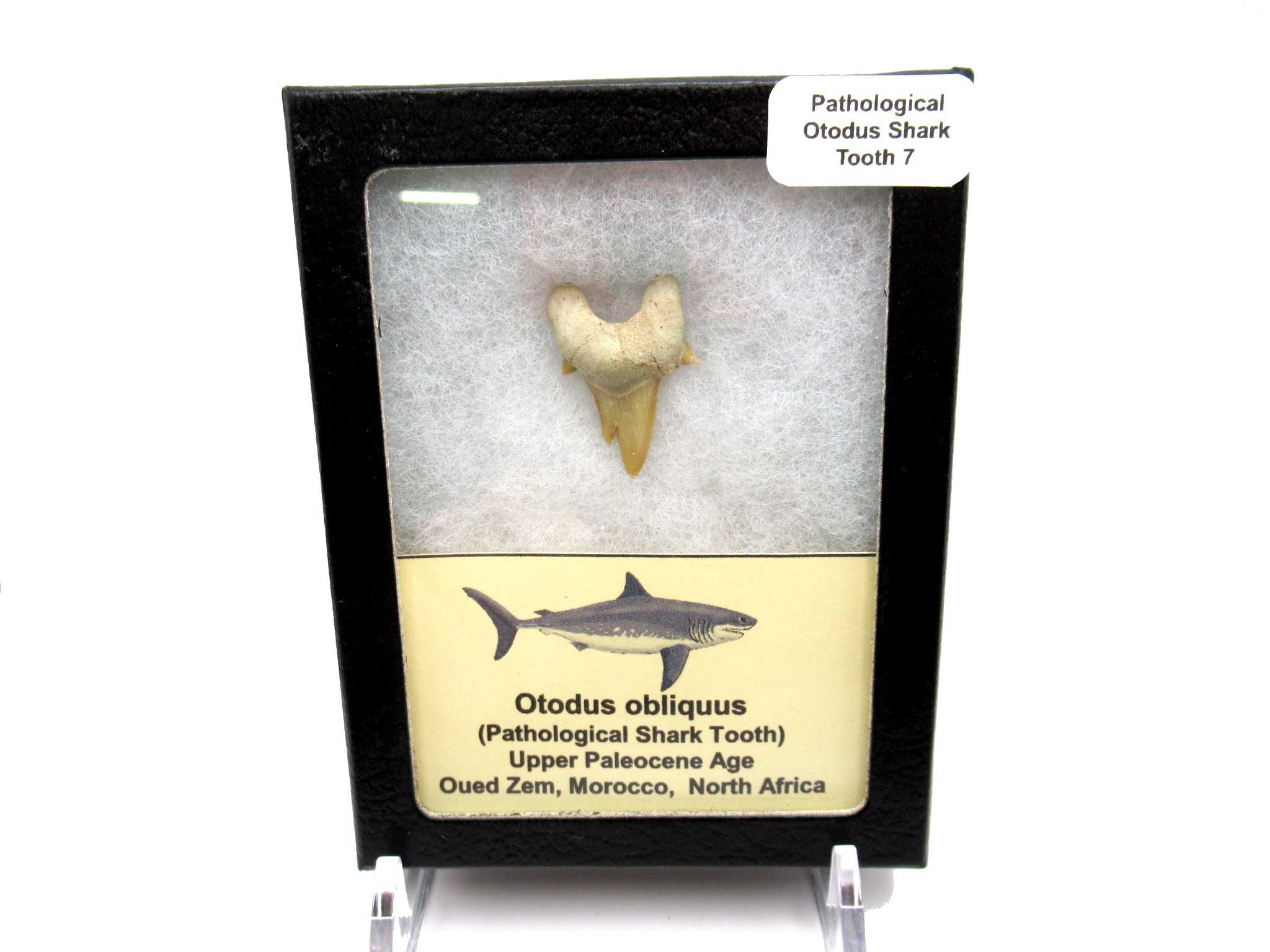 - This Pathological Shark Tooth measures .76″ WIDE and will come in a 3.25″ x 4.25″ Riker Mount with Label as Shown.