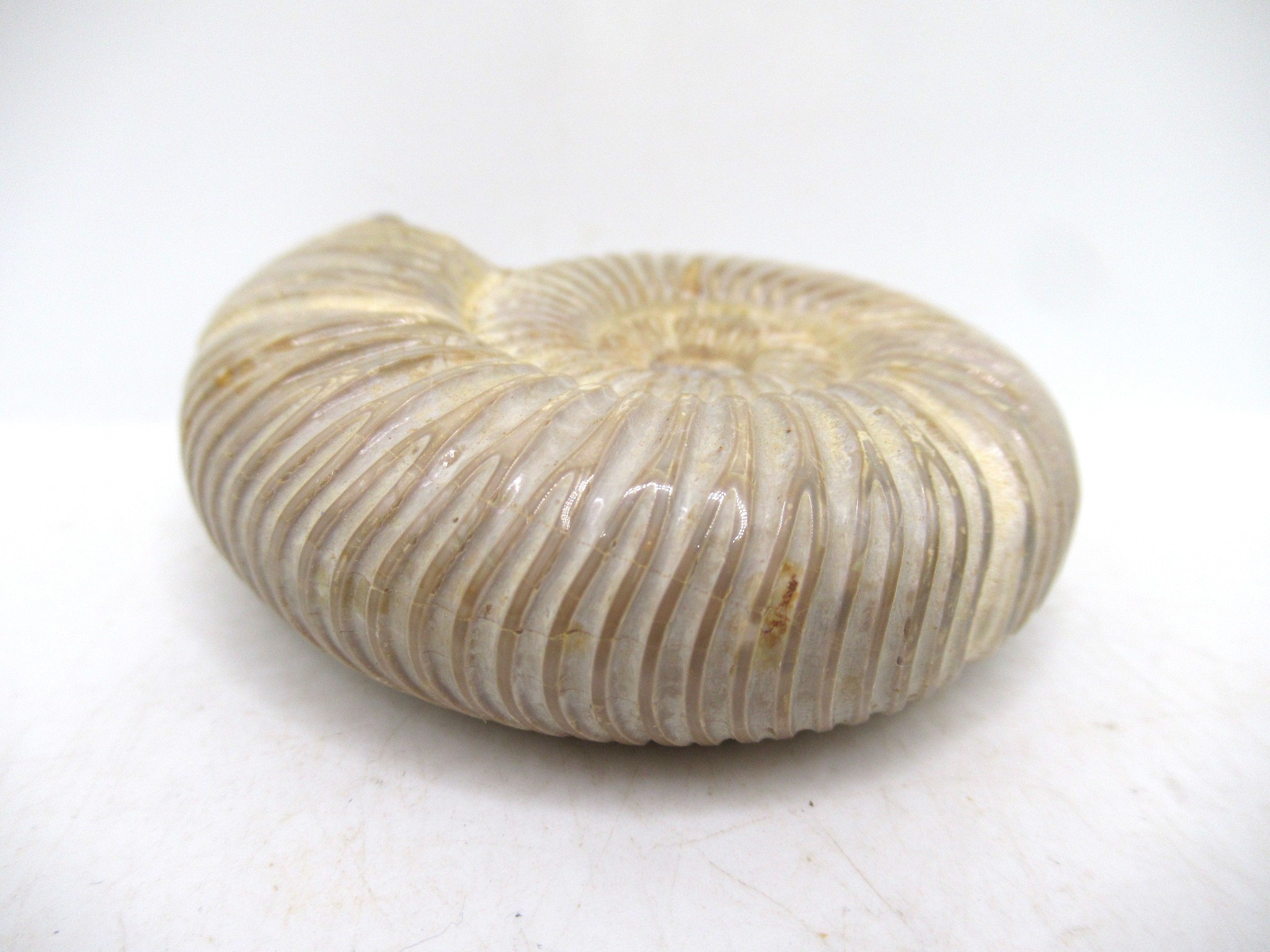 - This clearly, lightly polished specimen measures 2.54 inches wide as well as .77 inches thick. Finally, in contrast to Nautiloids, Ammonites are extinct. Even so, they are abundant.