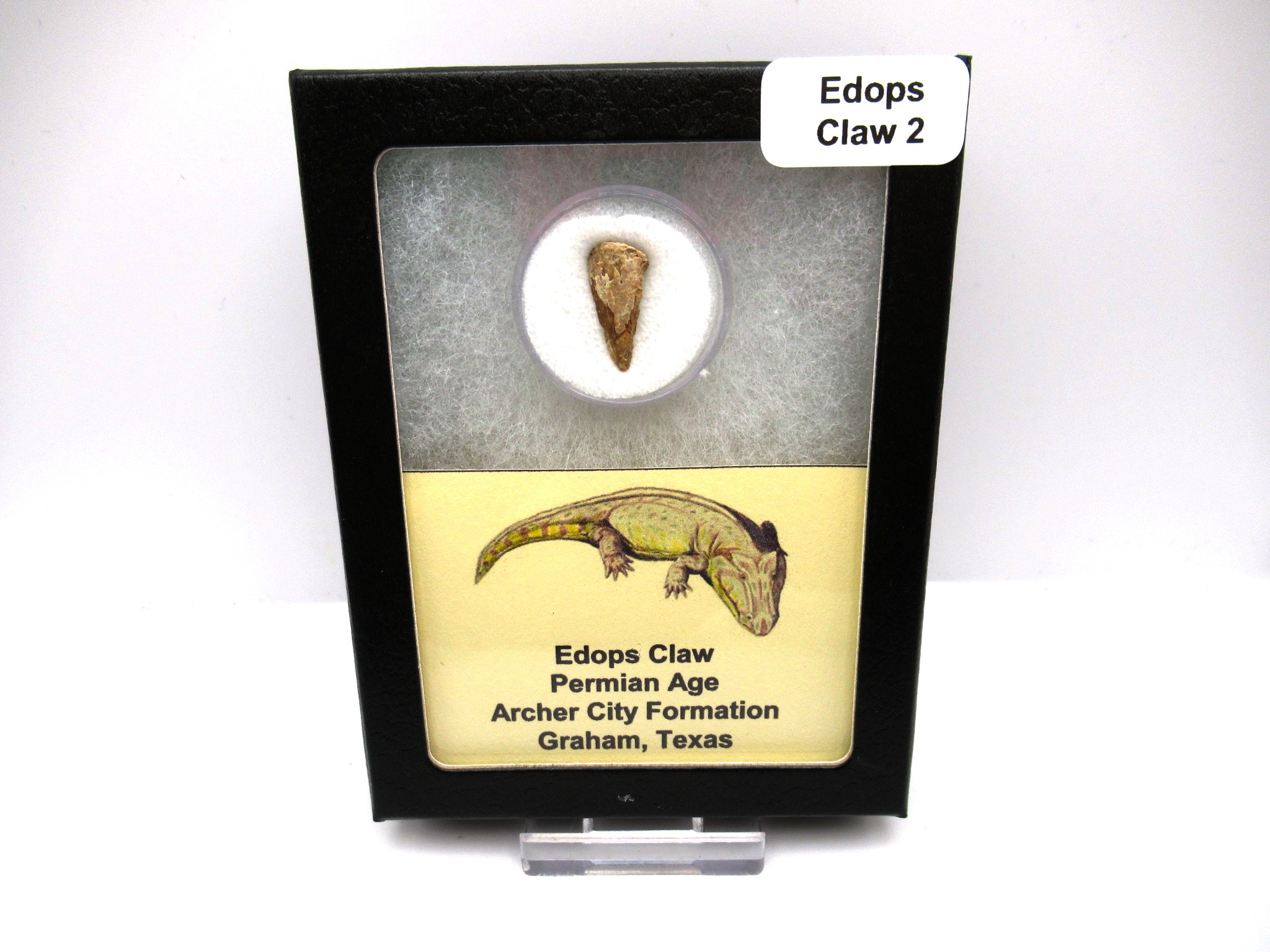 Edops (‘swollen face’) is an extinct genus of temnospondyl amphibian from the Early Permian Period. Unlike more advanced temnospondyls of the time, such as Eryops, Edops exhibited an archaic pattern of palatal bones, and still possessed various additional bones at the back of the skull. Edopoids also had particularly big premaxillae (the bones that form the tip of the snout) and proportionally small external nostrils. Within the clade, the most basal member seems to be Edops from the Early Permian Archer City Formation of the US, a broad-skulled animal with large palatal teeth.