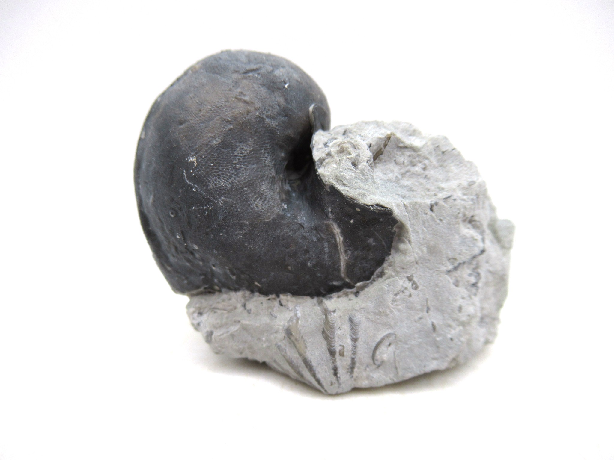 - This specimen has been meticulously prepared, and in addition, it sits in its natural matrix. The gastropod itself measures .95″ wide. Finally, the matrix measures 1.59″ wide.