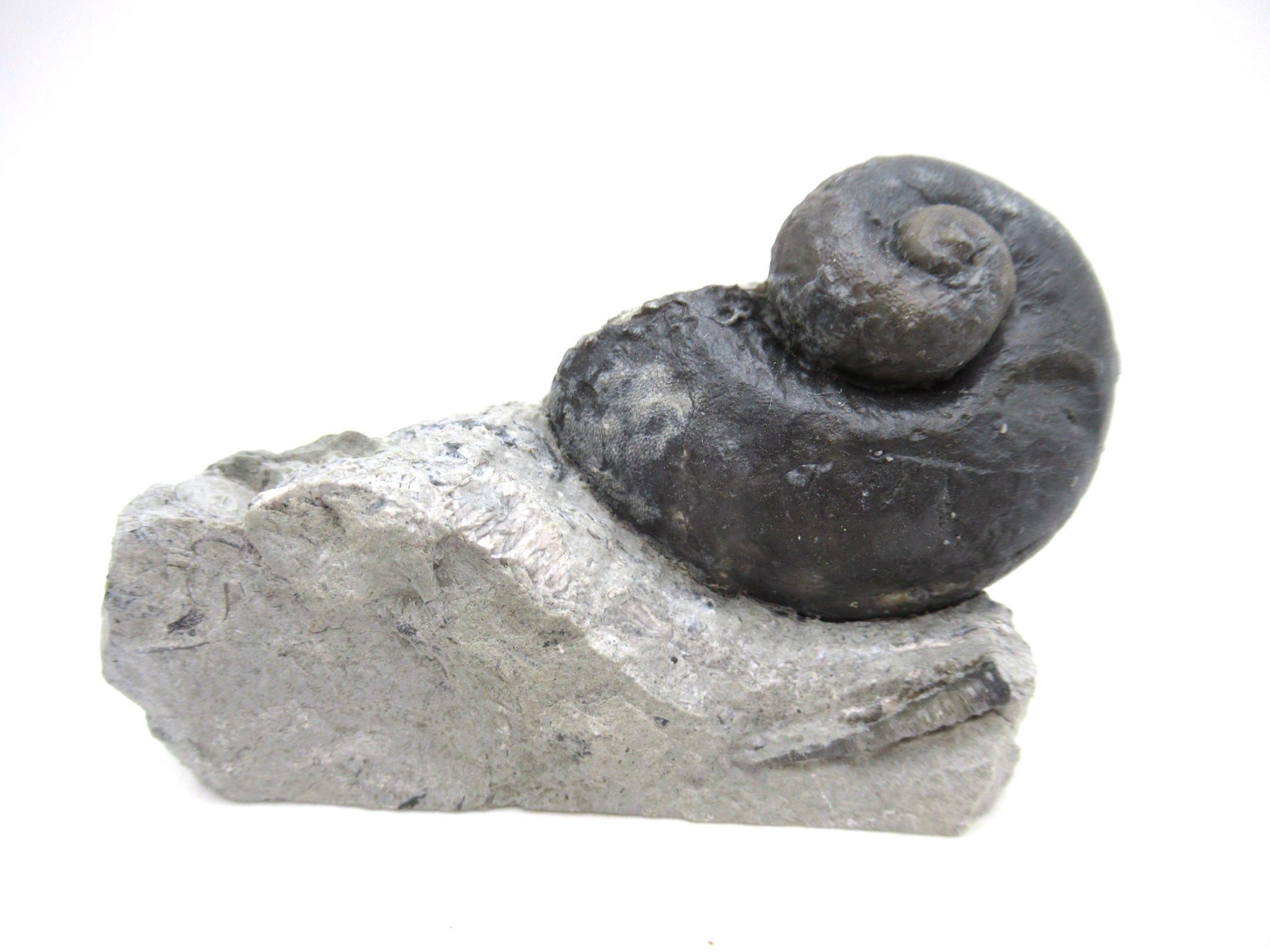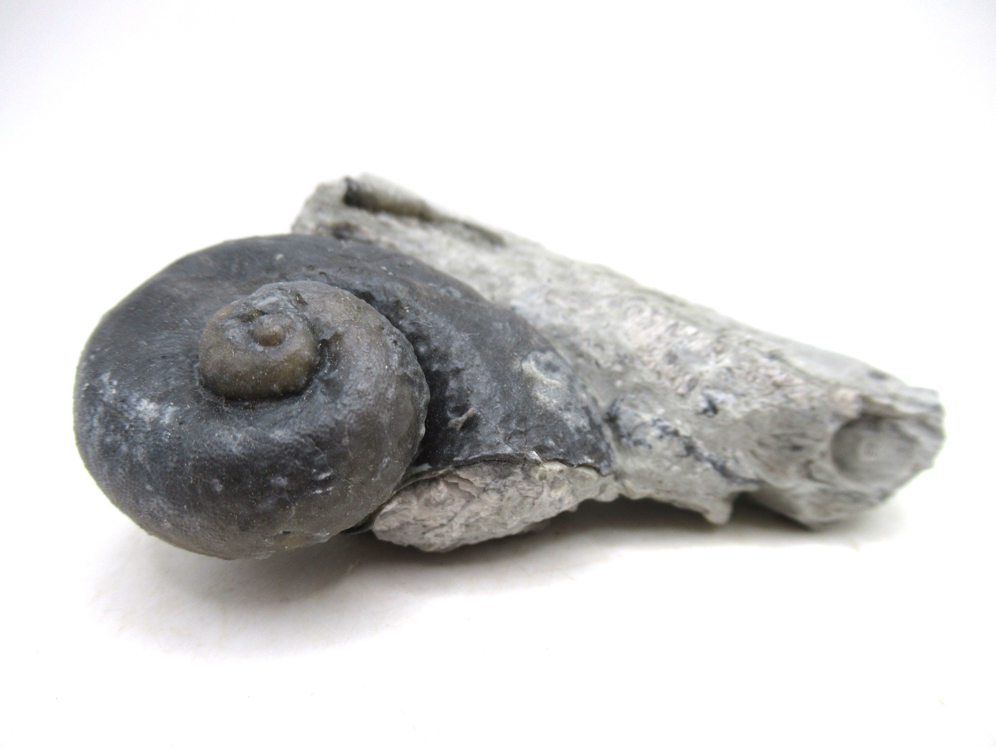 - This specimen has been meticulously prepared, and in addition, it sits in its natural matrix. The gastropod itself measures 1.39″ wide. Finally, the matrix measures 2.68″ wide.