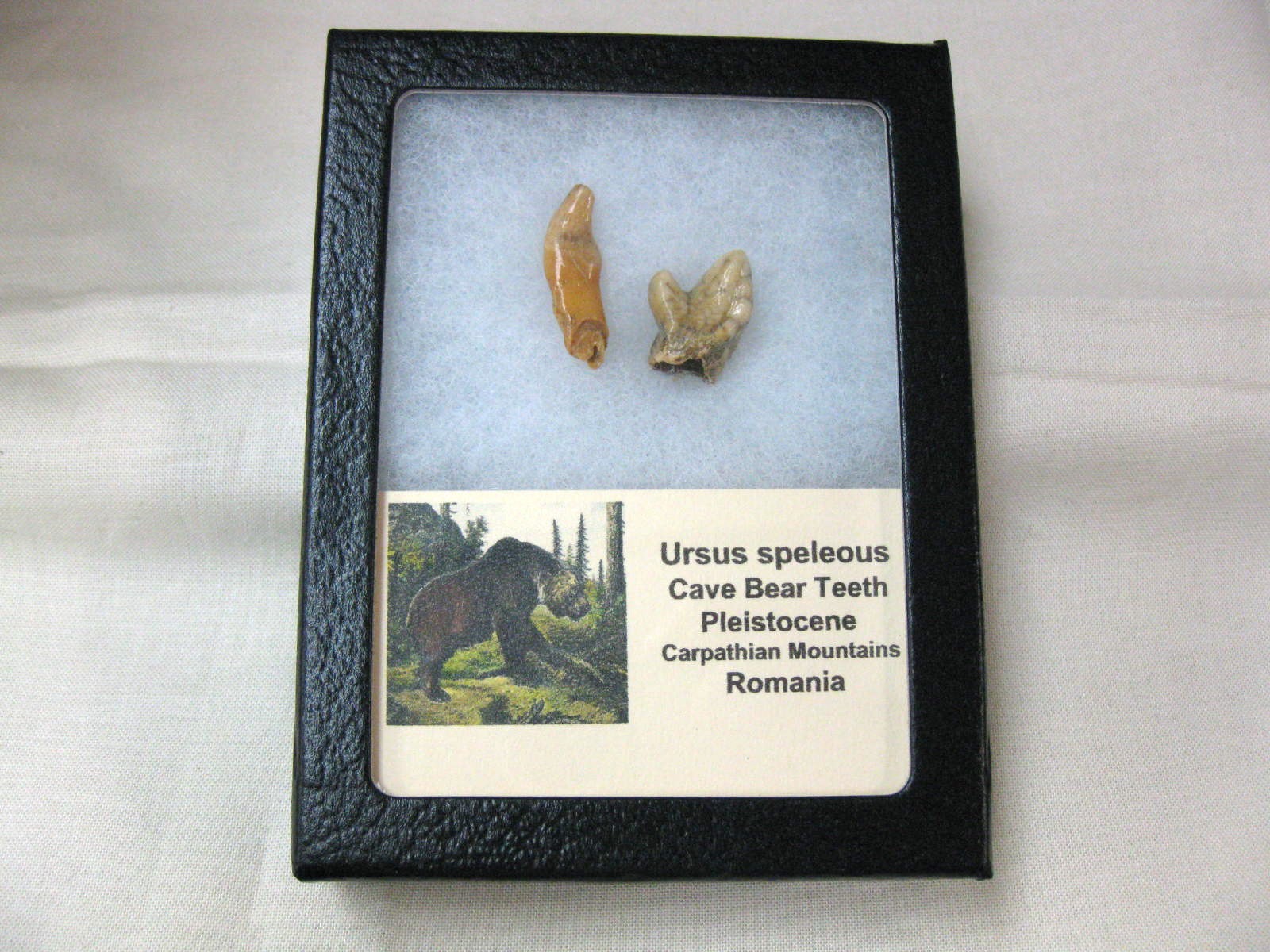 The cave bear (Ursus spelaeus) was a species of bear that lived in Europe during the Pleistocene and became extinct about 24,000 years ago during the Last Glacial Maximum. Both the name “cave” and the scientific name spelaeus are because fossils of this species were mostly found in caves, showing that cave bears may have spent more time in caves than the brown bear, which uses caves only for hibernation. Consequently, in the course of time, whole layers of bones, almost entire skeletons, were found in many caves. The cave bear had a very broad, domed skull with a steep forehead. Its stout body had long thighs, massive shins and in-turning feet, making it similar in skeletal structure to the brown bear. Cave bears were comparable in size to the largest modern-day bears. The average weight for males was 400 to 500 kilograms (880 to 1,100 lb), while females weighed 225 to 250 kg (495 to 550 lb).