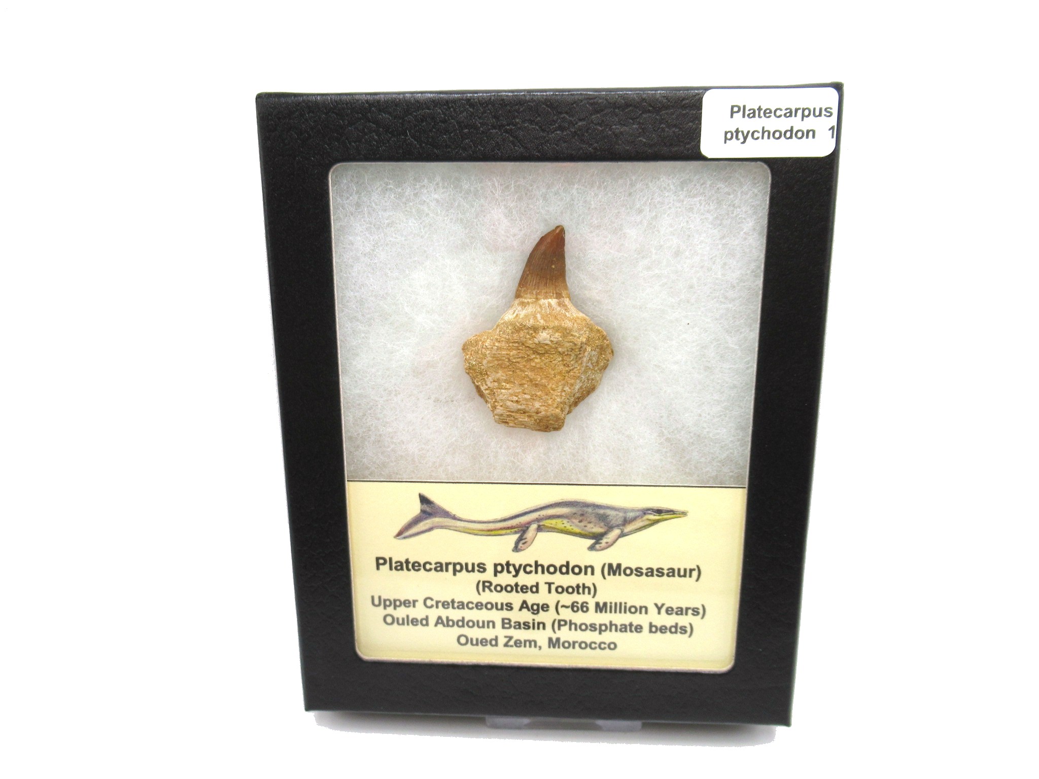 - Specimen measures 1.78″ long and will come in the 4.25″ x 5.2.5″ Riker Mount as shown. While loose teeth are not uncommon, getting FULLY ROOTED TEETH are quite rare!