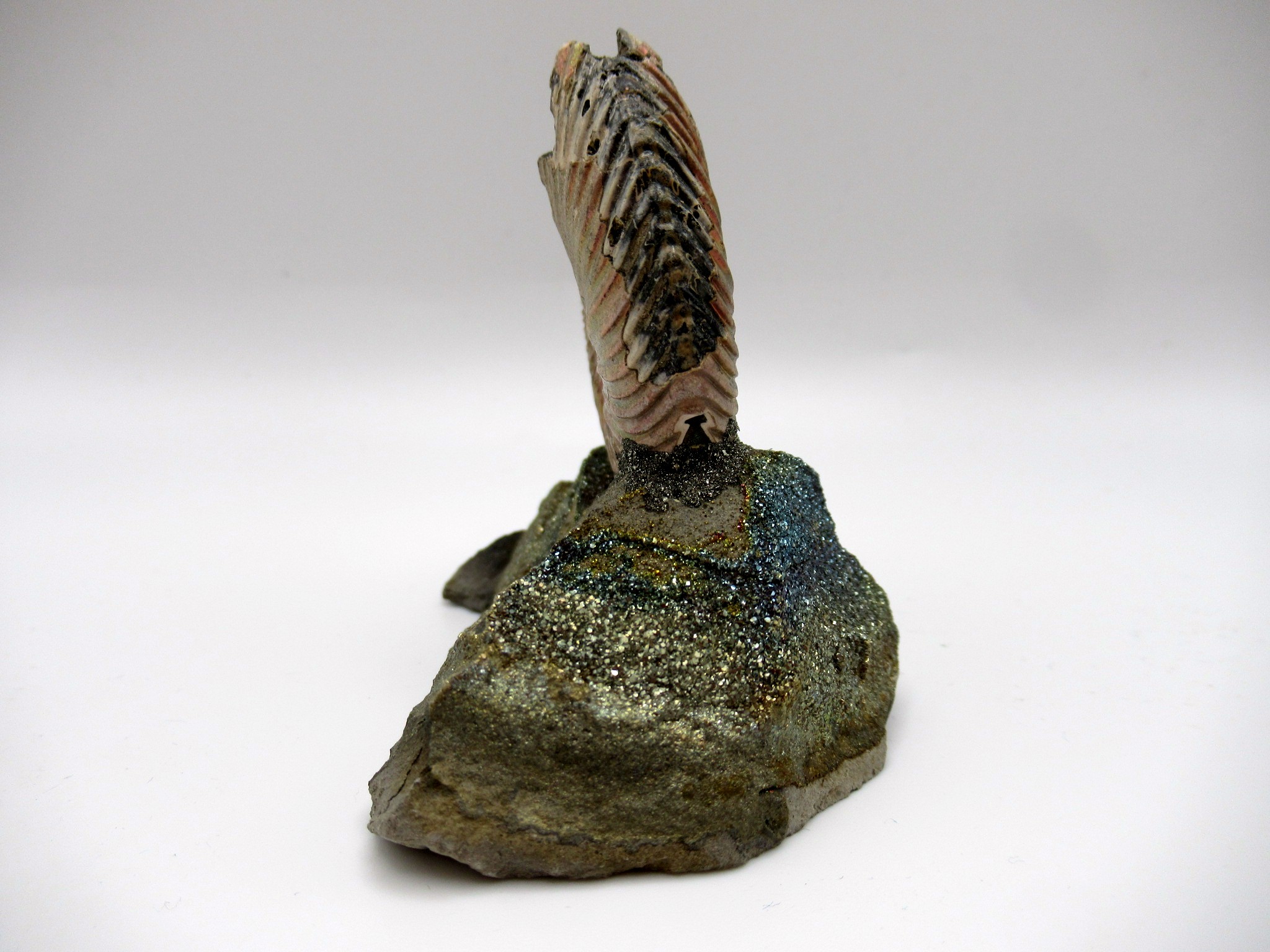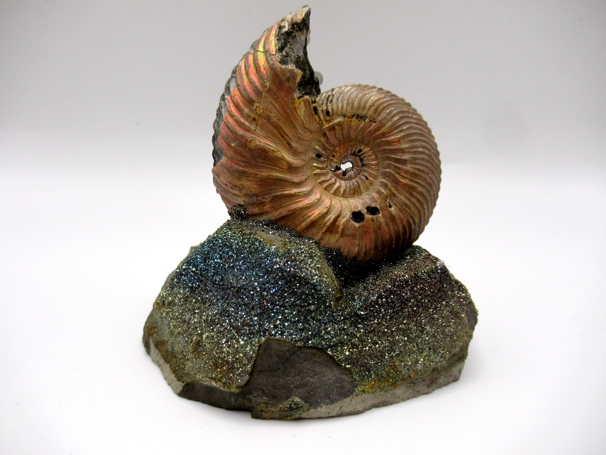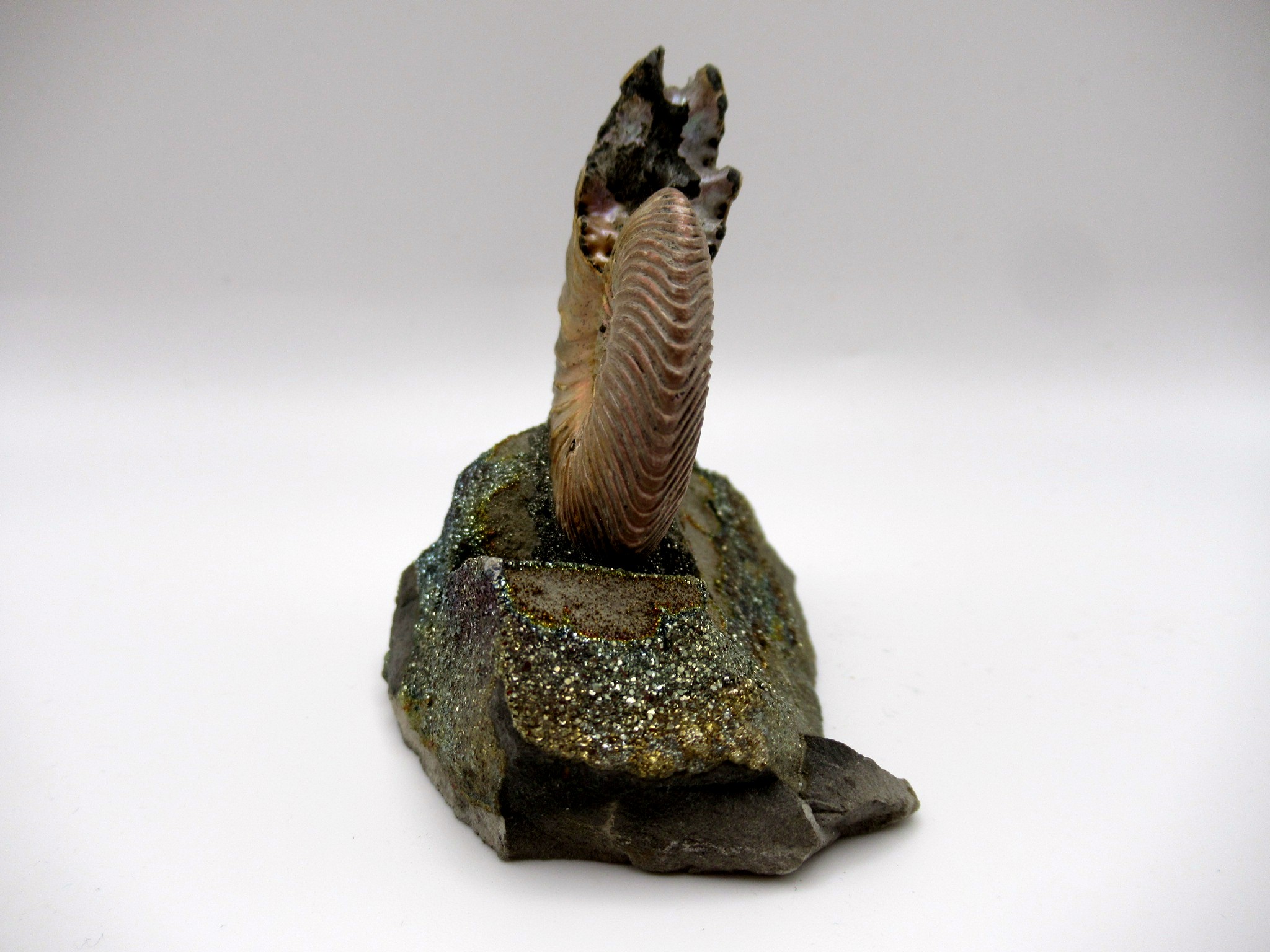 - This is a natural pyritized ammonite. In this case it was mounted on a fragment of argyllite septarian stone. In addition the septarian is covered with pyrite.