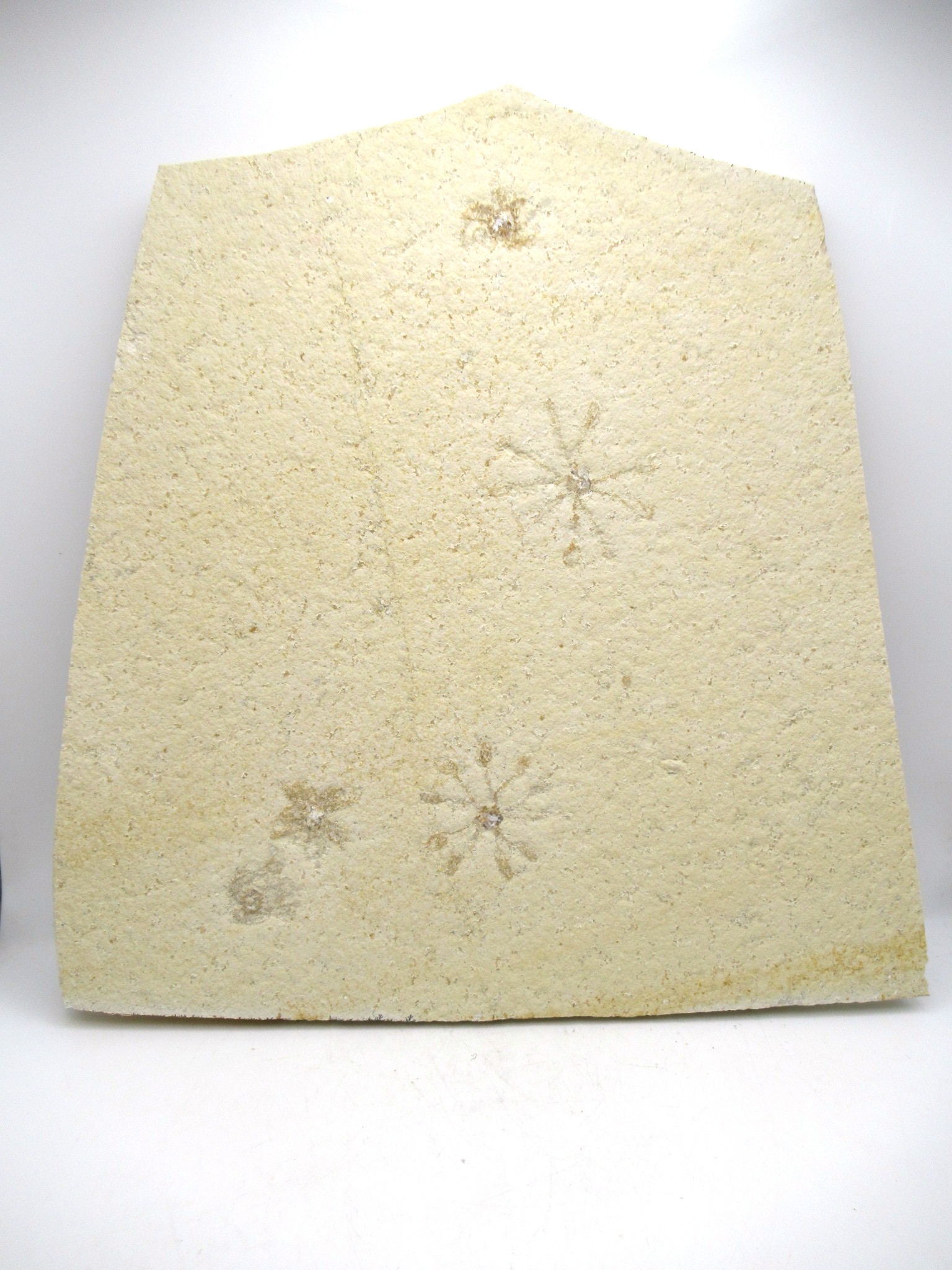 - This very unusual floating crinoid is nicely displayed on it’s natural bed of matrix. The overall size of the matrix is approx. 8.98″ x 9.31″ at the widest points. Our specimens are NATURAL, as found. Many specimens can be found for sale that have been “tinted” to highlight the details which can be a bit pale when coming out of the quarry. Others have been outright PAINTED to add details that were never there! This specimen has had NO TINT or PAINT applied.