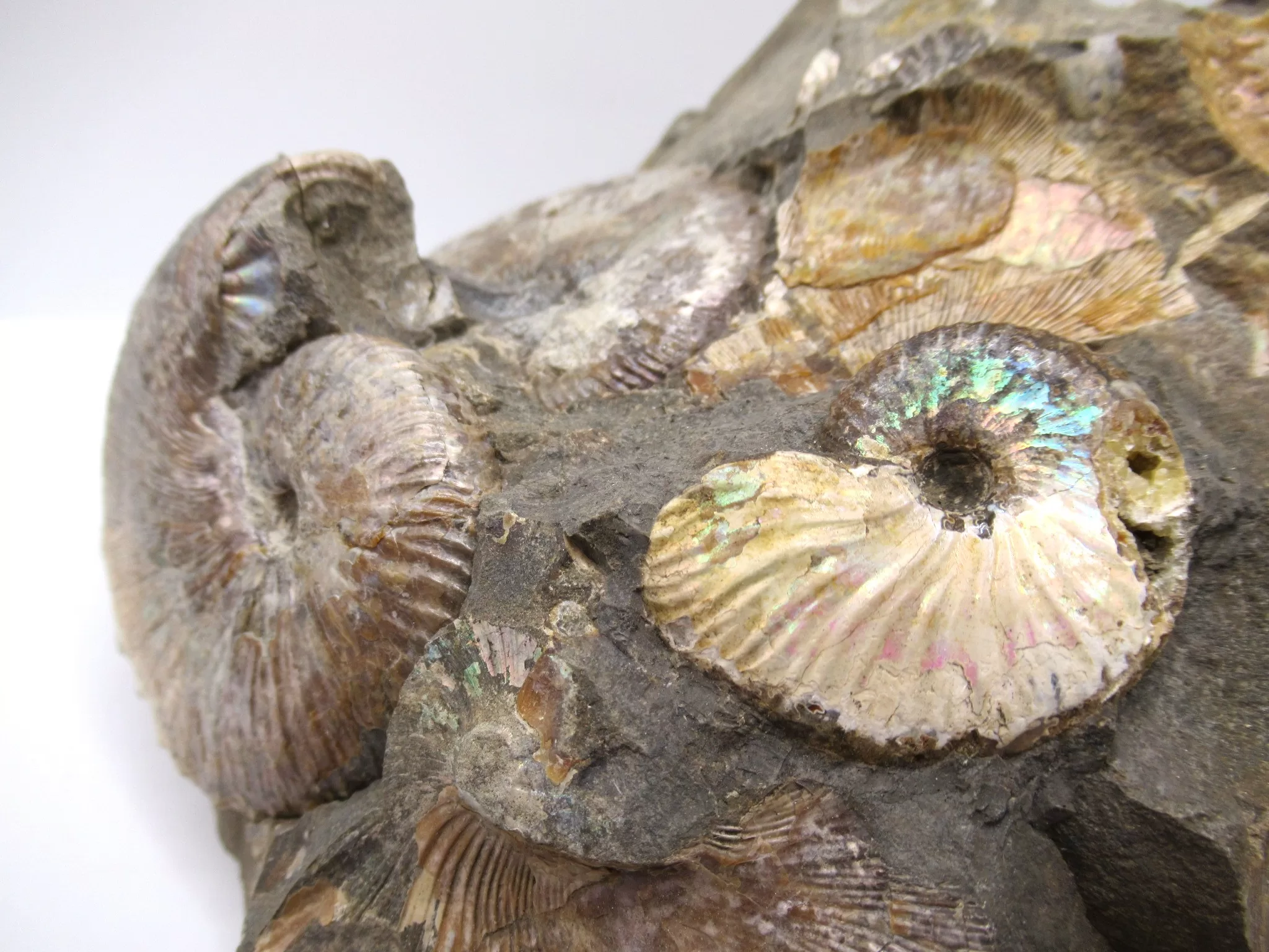 Ammonite fossils are found on every continent. And come in every naturally occurring color. Because of their rapid evolution and widespread distribution, they are an excellent tool for indexing and dating rocks. If an ammonite is found in clay the clay will preserve the Ammonites mother-of-pearl luster.