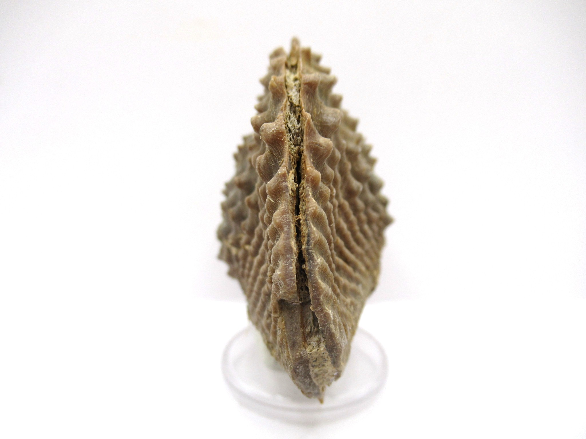 Trigonia is an extinct genus of saltwater clams. In this case the genus is the most readily identifiable member of the family. Illustrated by a series of strong ribs also known as costae along the anterior part of the shell exterior. The fossil range of the genus spans from 298 to 56 Million Years Ago. In this case there is only one living relative alive today. This specimen is beautifully prepared as well as very detailed.