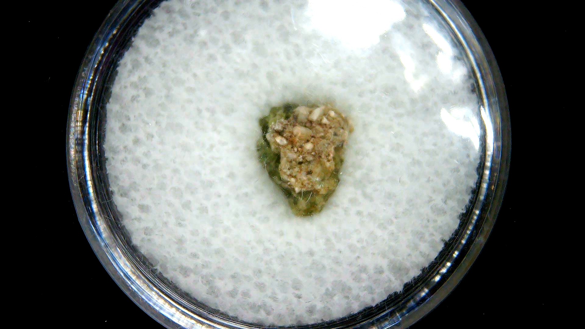• The Trinitite Atomic Bomb Glass Piece is housed in the 1.25″ Gem Jar inside of the Riker Mount