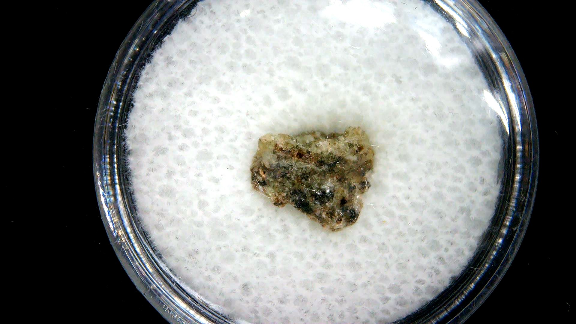 • The Trinitite Atomic Bomb Glass Piece is housed in the 1.25″ Gem Jar inside of the Riker Mount