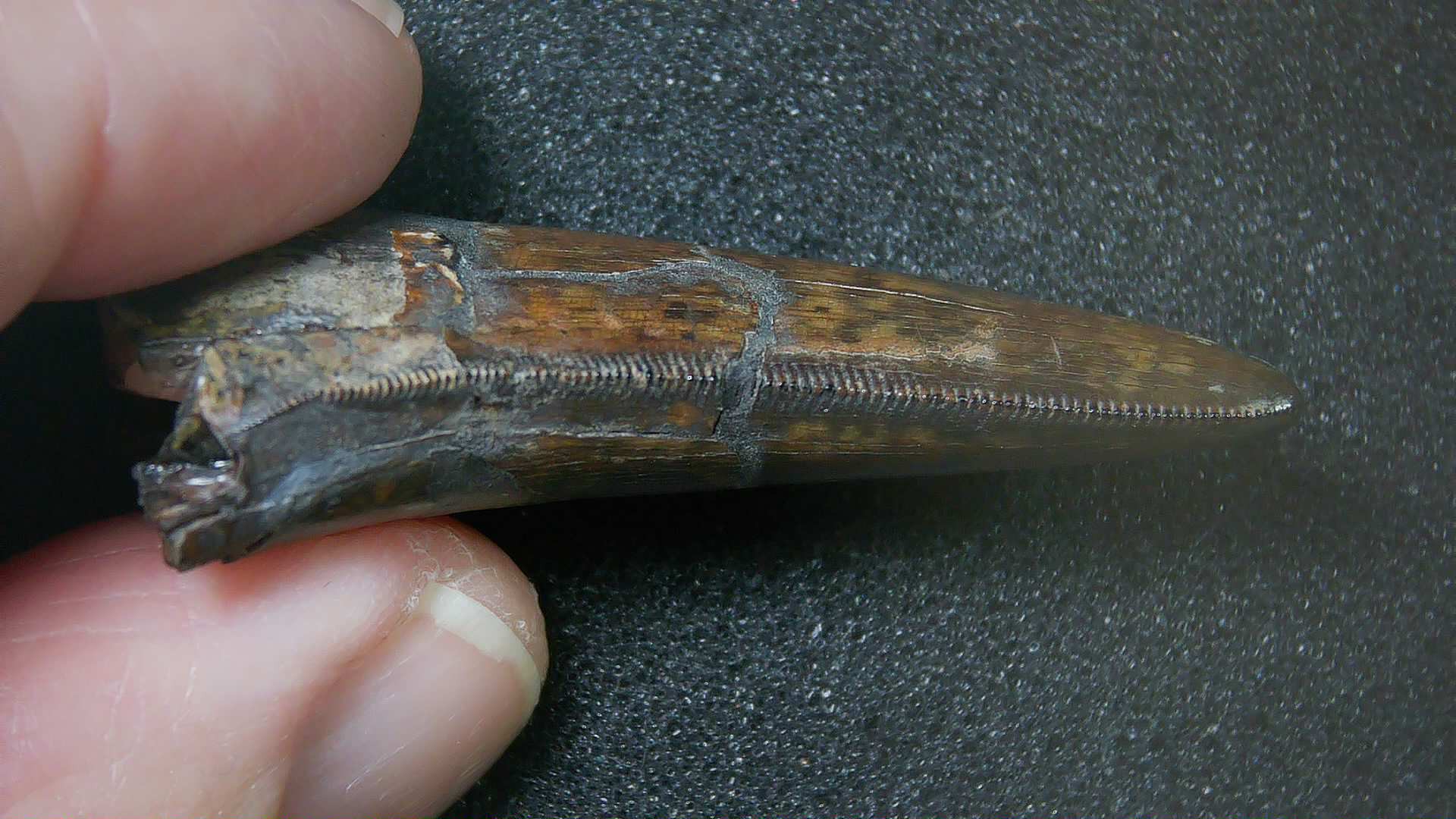 - This tooth measures 1.79″ long as well as .79″ wide. In addition, it has nice serrations, enamel and tip as well. (Repaired as shown in Photos) it will come with an ID Label as well. Finally, 100% Guaranteed Genuine