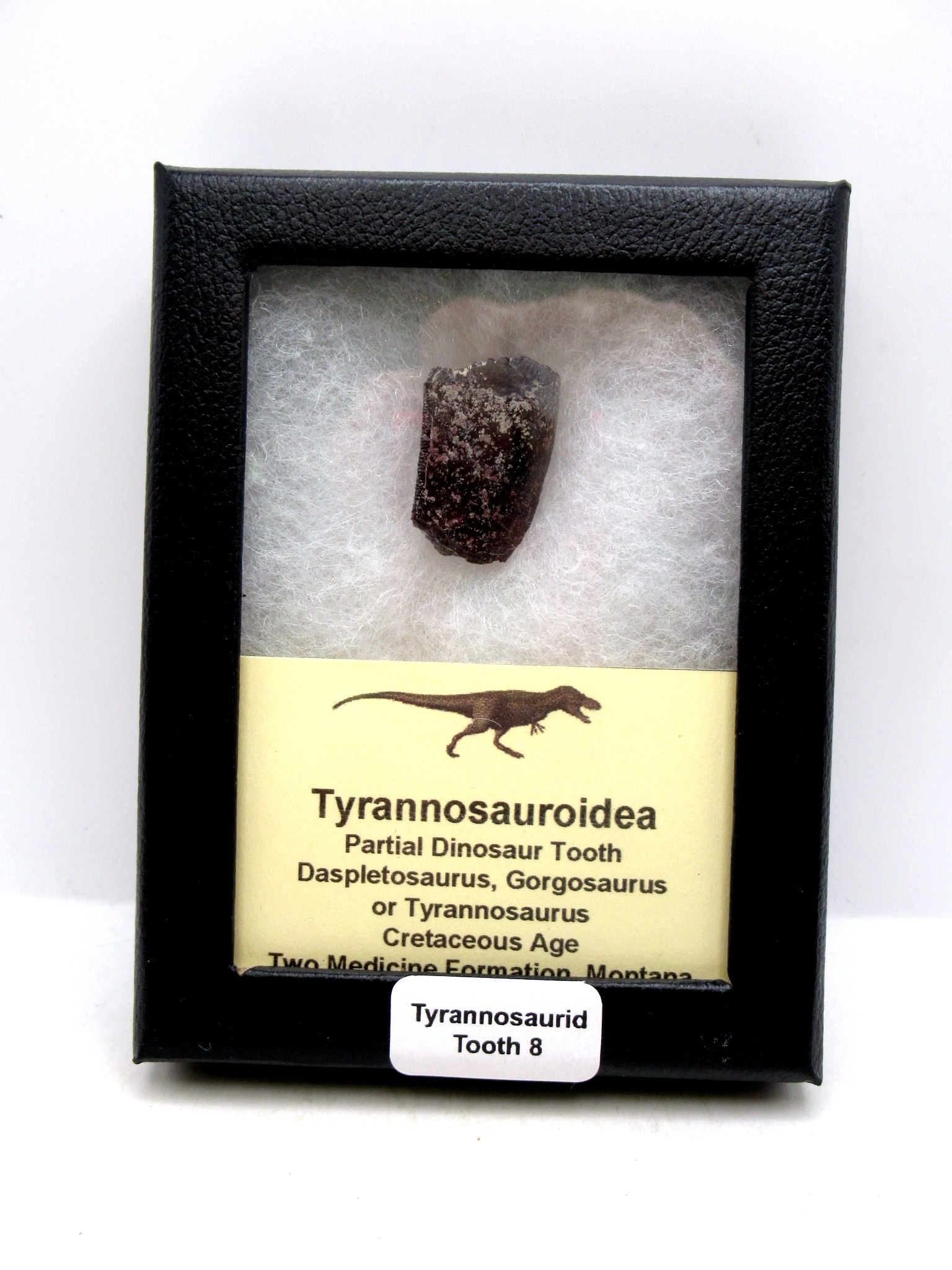 - This is a partial tooth that measures 1.06″ long. These may be from any of the theropod dinosaurs listed above. They are obviously meat-eater teeth.