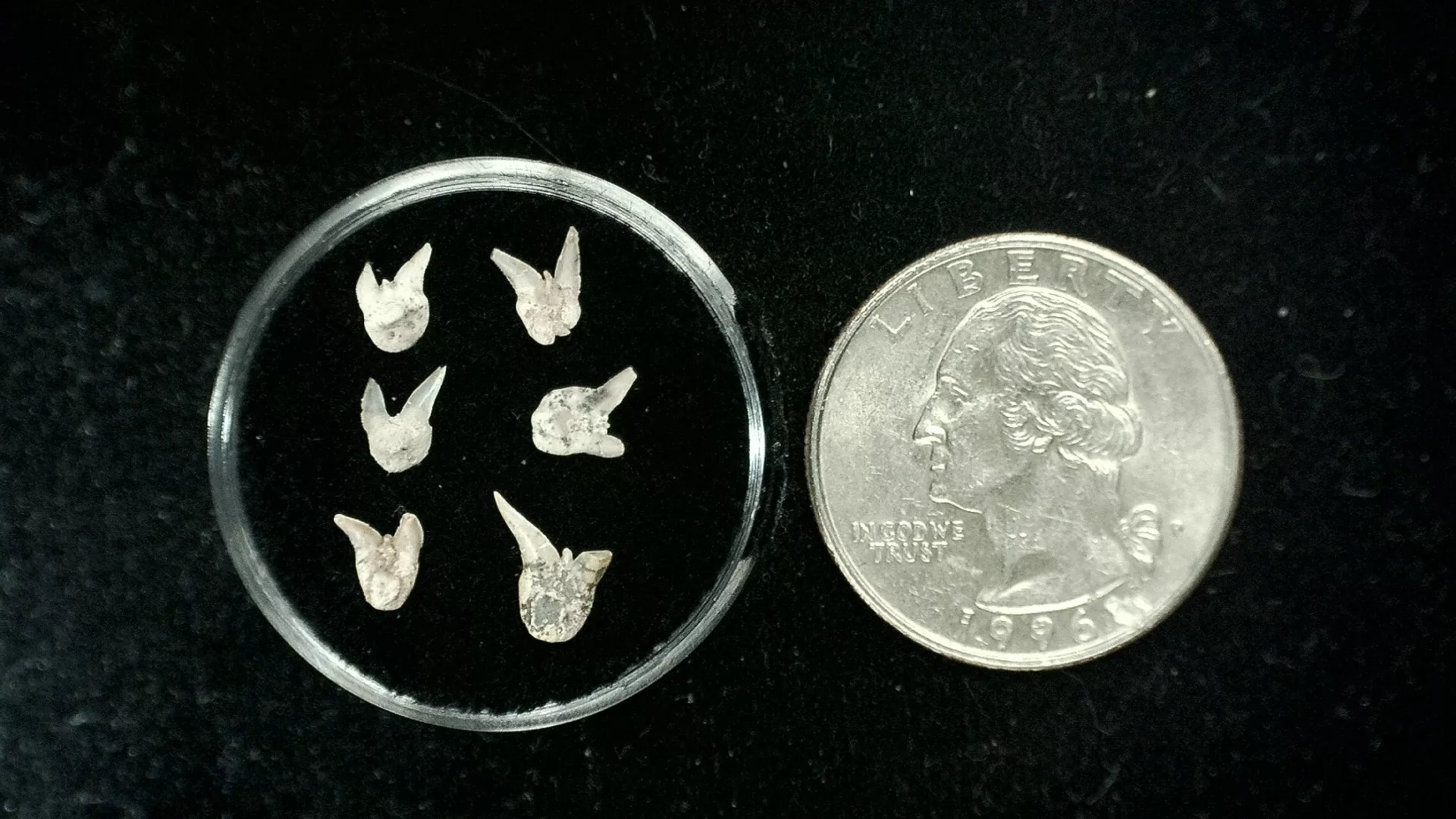 • This is a nice group of excellent quality shark teeth.  This group comes in the 1.25″ gem jar as shown.