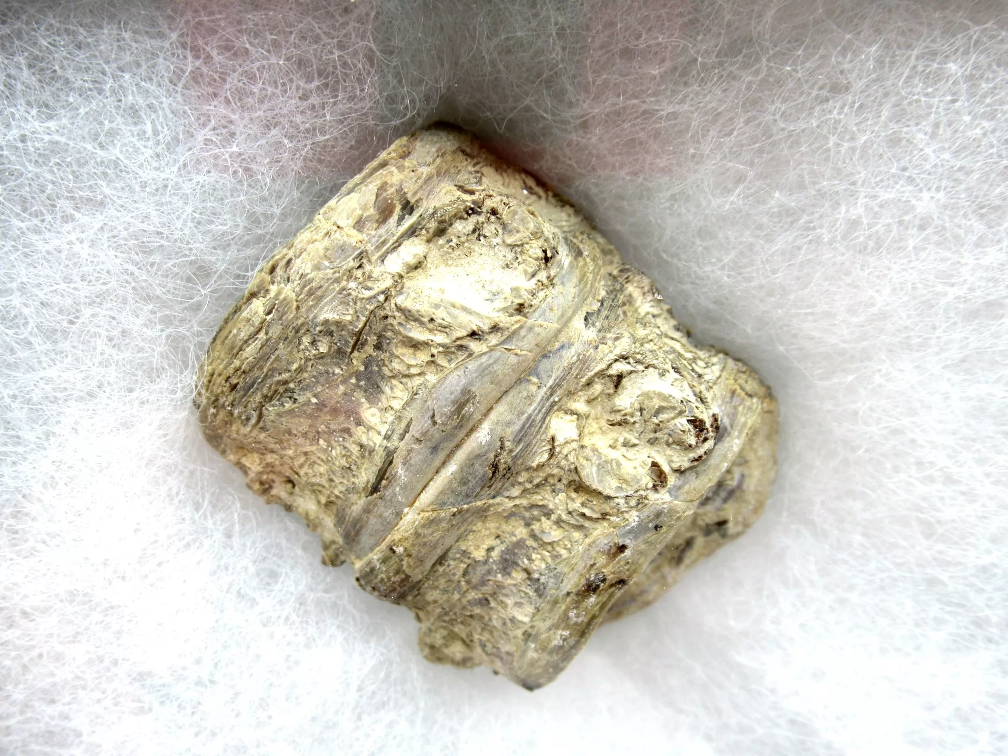 • This is a fused string of vertebrae that measures  1.49″ long.  The specimen comes in a 4.5″ x 5.5″ Riker Mount with Label as Shown.
