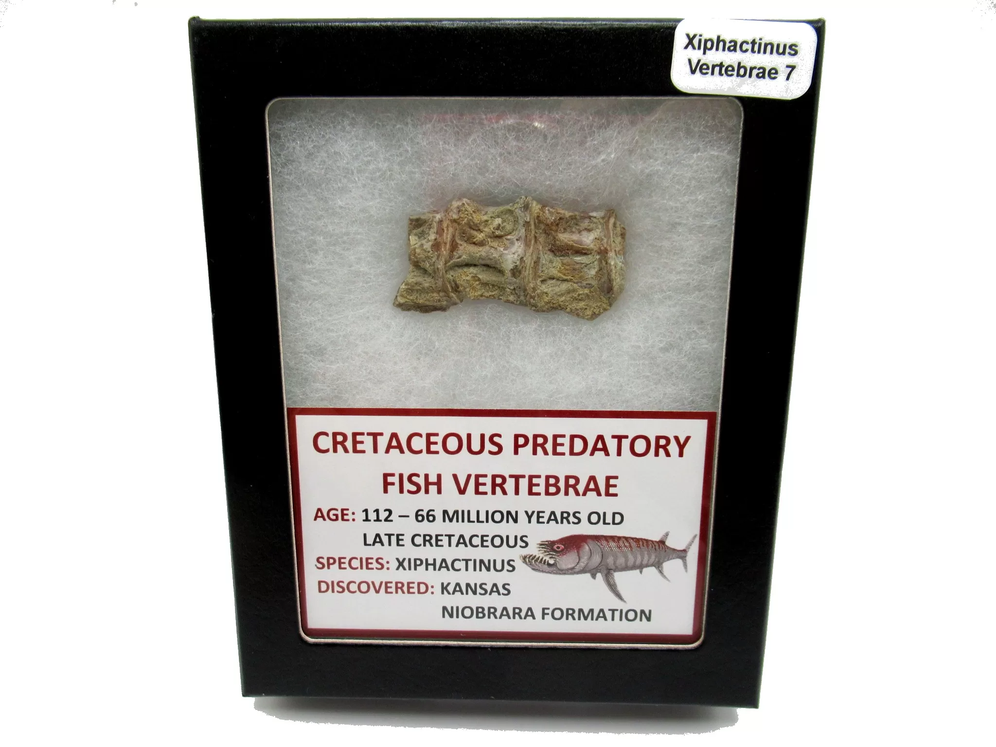 - This is a fused string of vertebrae that measures 1.81″ long. The specimen comes in a 4.5″ x 5.5″ Riker Mount with Label as Shown.